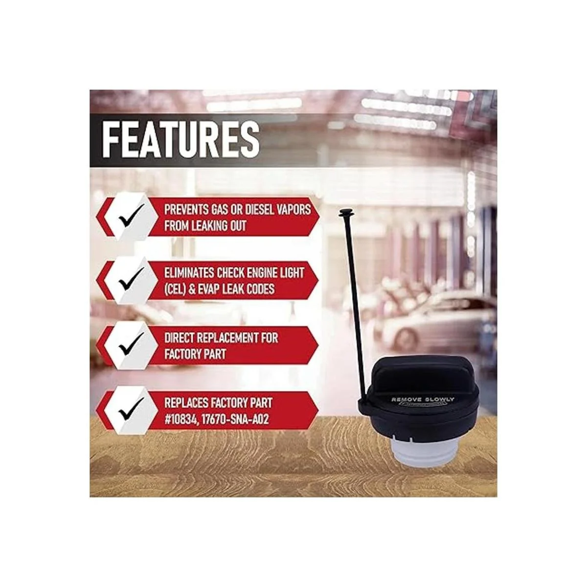 Sustituye a la pieza 10834, 17670T3WA01, 17670 T3W A01, 17670T3WA01 comúnmente encontrado en los populares modelos Accord, Civic, Fit, HRV, CRV, Odyseey y Pilot, incluyendo modelos de año 06, 07, 08, 09, 10, 1111112, 13, 13, 13. 4, 15, 16, 17, 18. La tapa del depósito de combustible se puede colocar fácilmente en la parte trasera del vehículo al que se puede acceder abriendo la puerta del combustible.