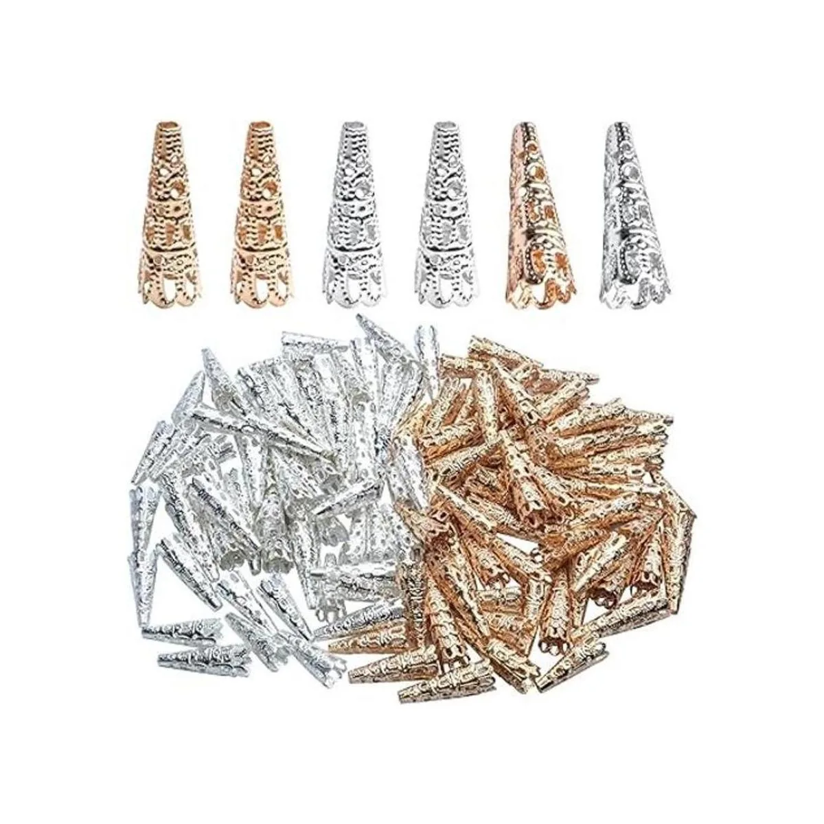 Tapas de cuentas de flores, 200 piezas de conos de flores de cuentas de metal con filigrana para hacer joyas de borla de bricolaje