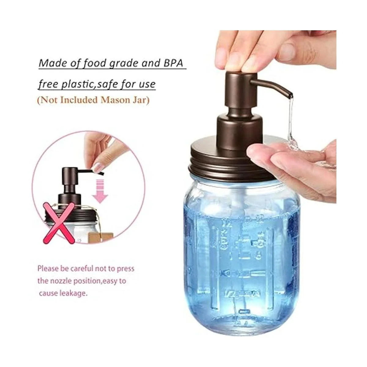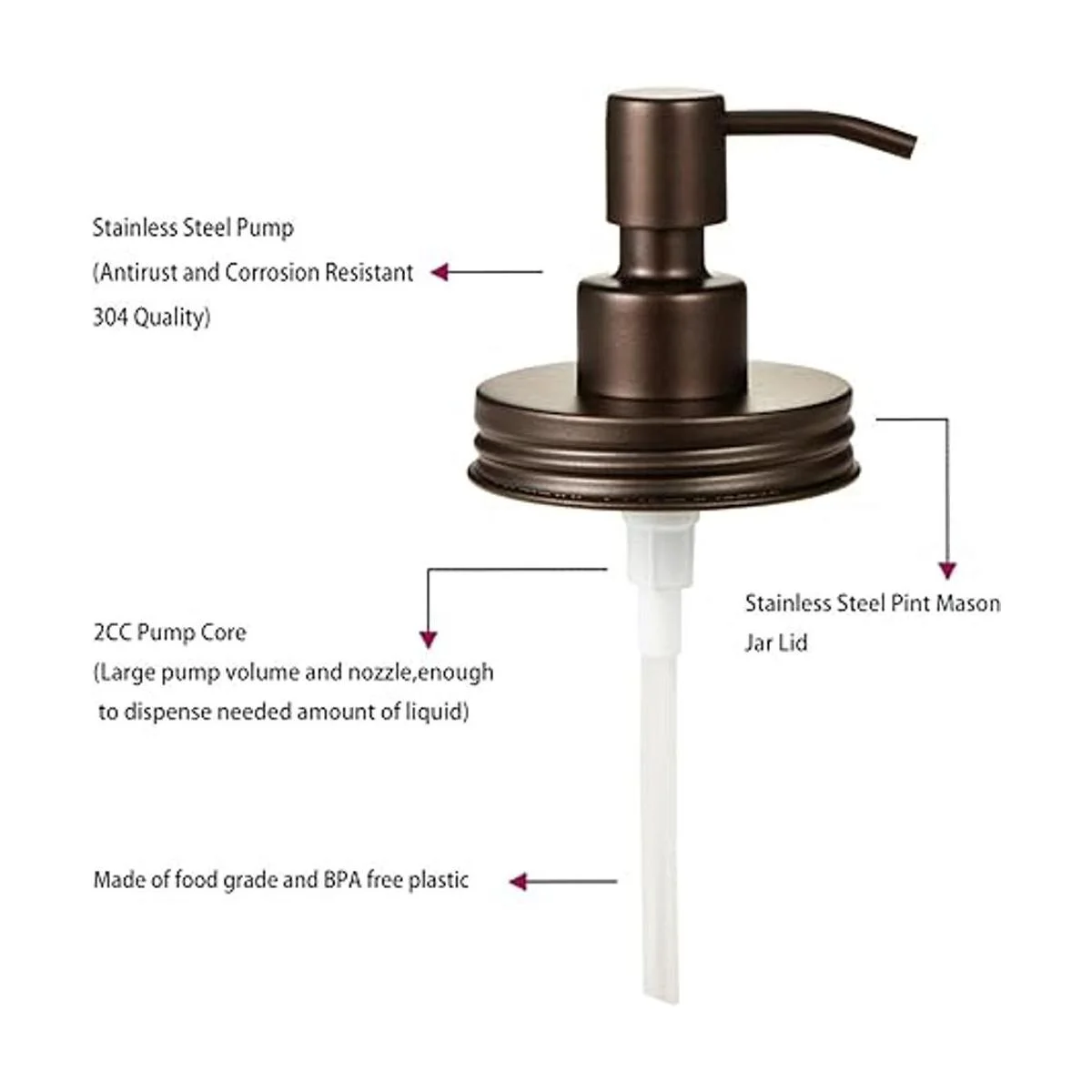 Moderno y práctico: coloca las tapas dispensadoras de jabón en solo un tarro de pinta de 16 onzas y tendrás un conjunto de deliciosos dispensadores de jabón y loción. La bomba de loción se puede presionar más de 10.000 veces en prueba de prensado. Puede bajar suavemente y volver completamente cuando se presiona repetidamente. Tarros no incluidos