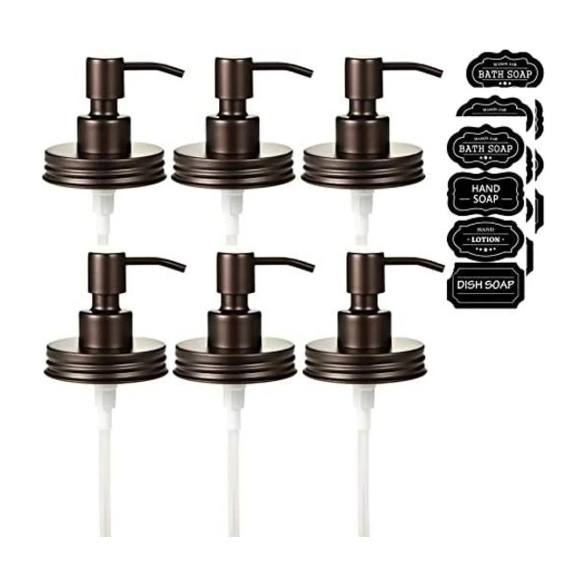 Tapas dispensadoras de jabón líquido Mason Jar 304 bombas y tapas de acero inoxidable para tarro Mason de boca regular de 16 onzas, decoración rústicagranja, para jabón de manos, jabón de platos, lociones bronce, paquete de 6