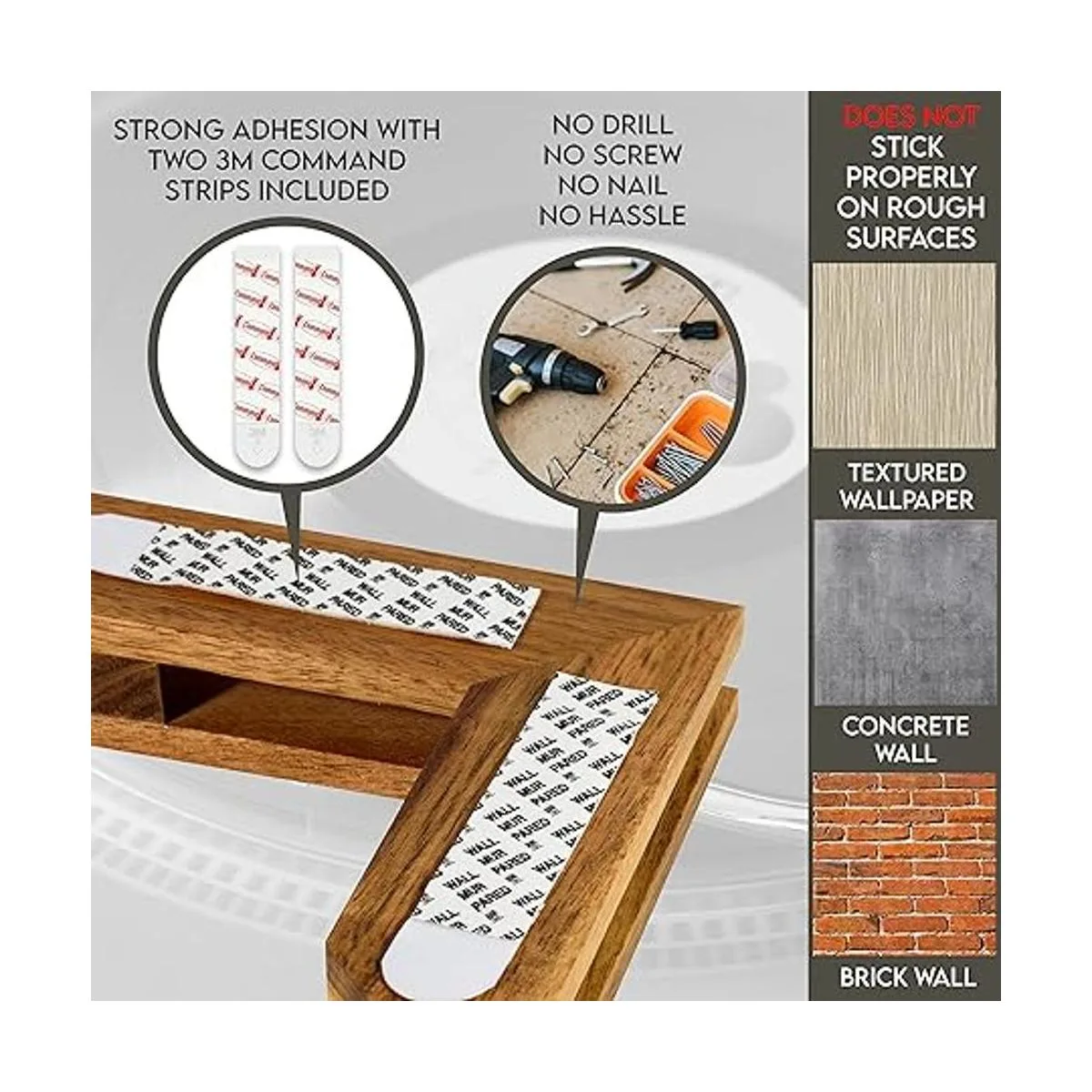 Montaje sin complicaciones: estos soportes de vinilo vienen con fuertes tiras adhesivas 3M Command ver imágenes del producto para el montaje. Por lo tanto, no se requieren clavos, tornillos ni taladros, lo que hace que la instalación sea simple y sin esfuerzo. Nota: Utiliza una herramienta de nivel para asegurarte de que los soportes estén correctamente nivelados.
