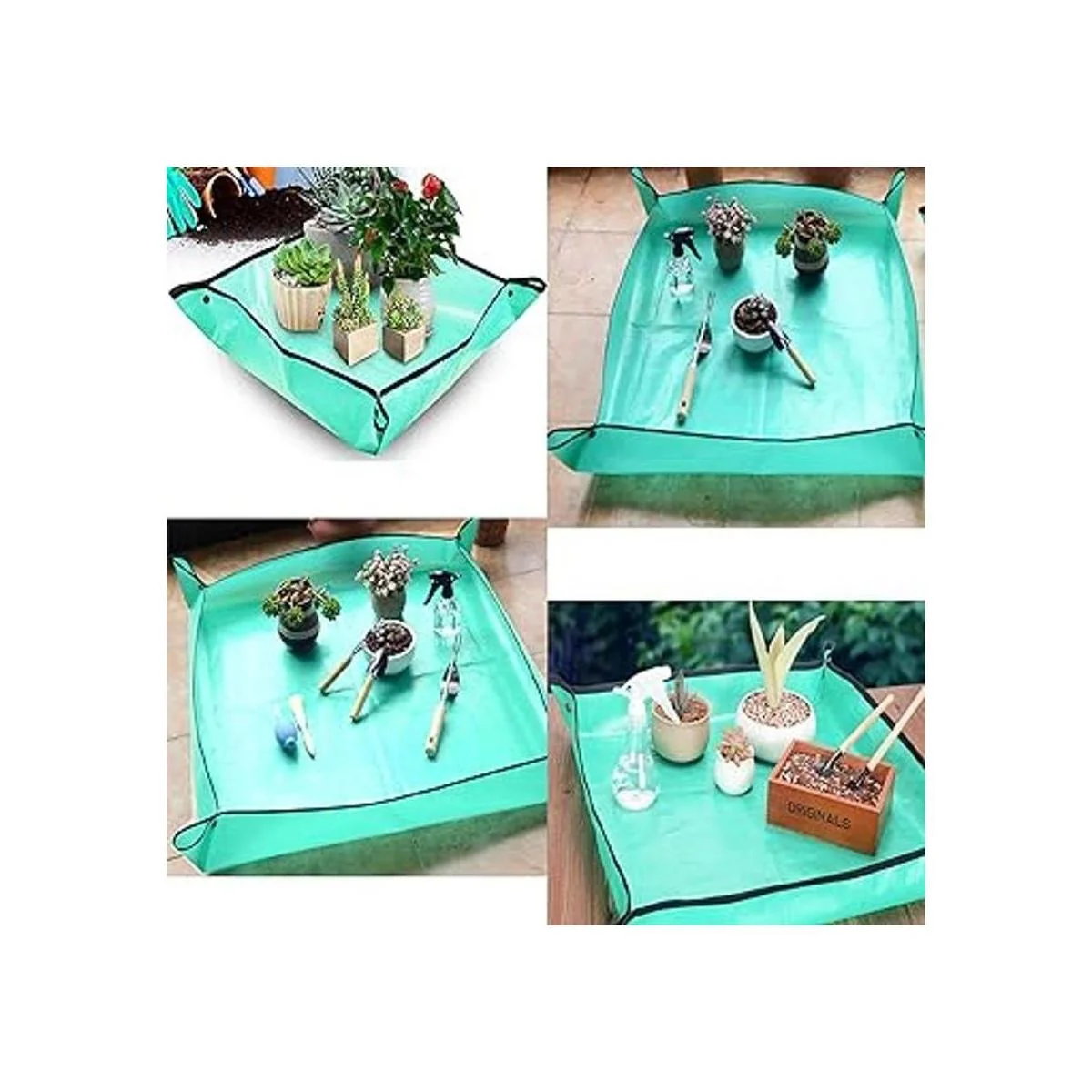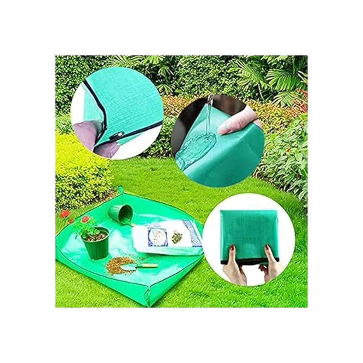 Tapete de 39.4 x 39.4 pulgadas, tapete de jardinería plegable grande, tapete de trasplante impermeable para interiores y exteriores, con 15 almohadillas de malla para agujeros para macetas