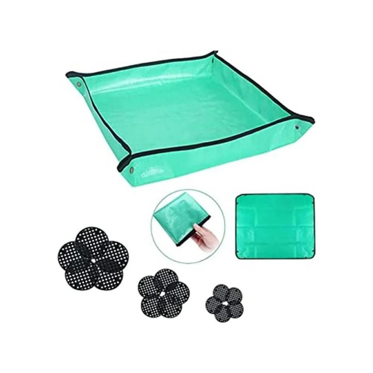 Tamaño grande: la alfombrilla es de 39.4 x 39.4 pulgadas, más grande que otros productos, puedes caber todo en ella. Es cuadrado y plegable, fácil de transportar y fácil de plantar flores y otras plantas. El juego también incluye 15 almohadillas de malla negras, redondas de diferentes tamaños. Un regalo ideal para personas que aman la jardinería.