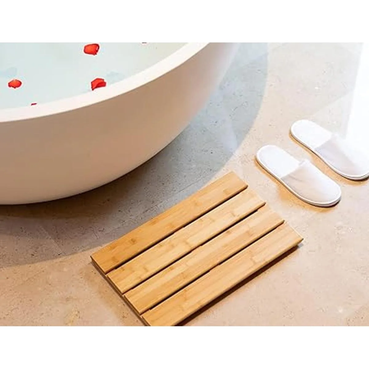 Cómodo: nuestra alfombrilla de baño de bambú proporciona un lugar de ducha cómodo y estable; mantén tus pies fuera del suelo húmedo y resbaladizo.