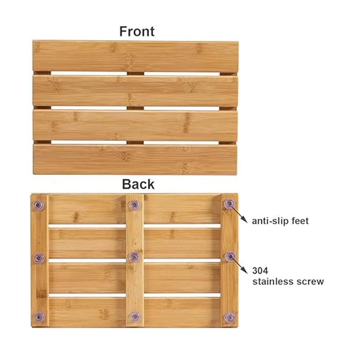 Diseño antideslizante: cada alfombrilla de ducha de bambú viene con tornillos de acero inoxidable y almohadillas de goma antideslizantes atornilladas de forma segura, evita que se deslice y protege el suelo de arañazos.