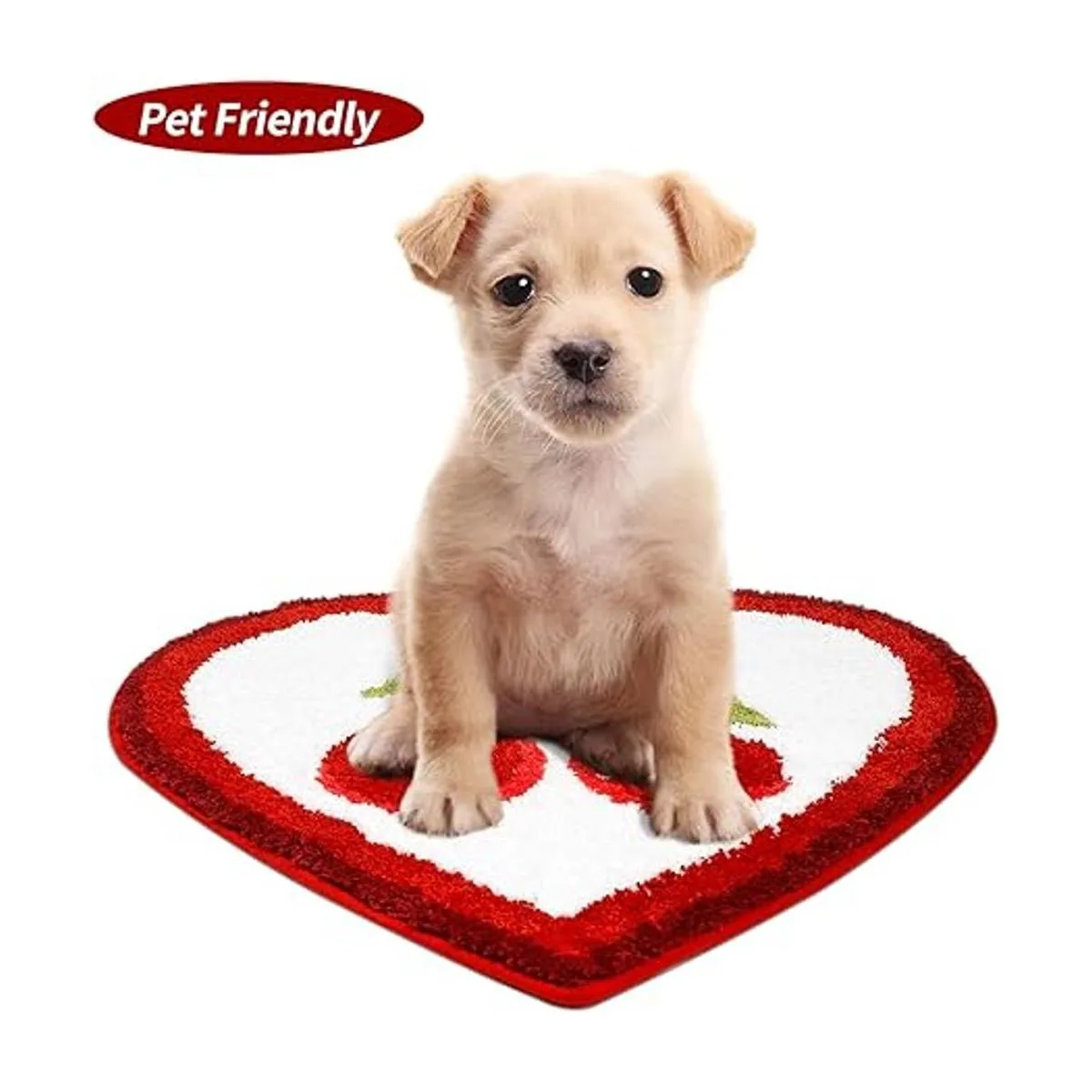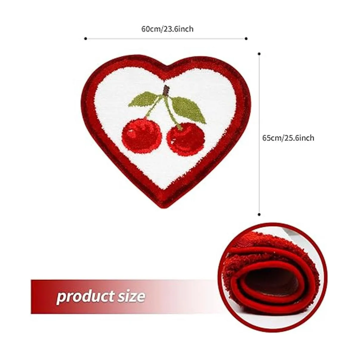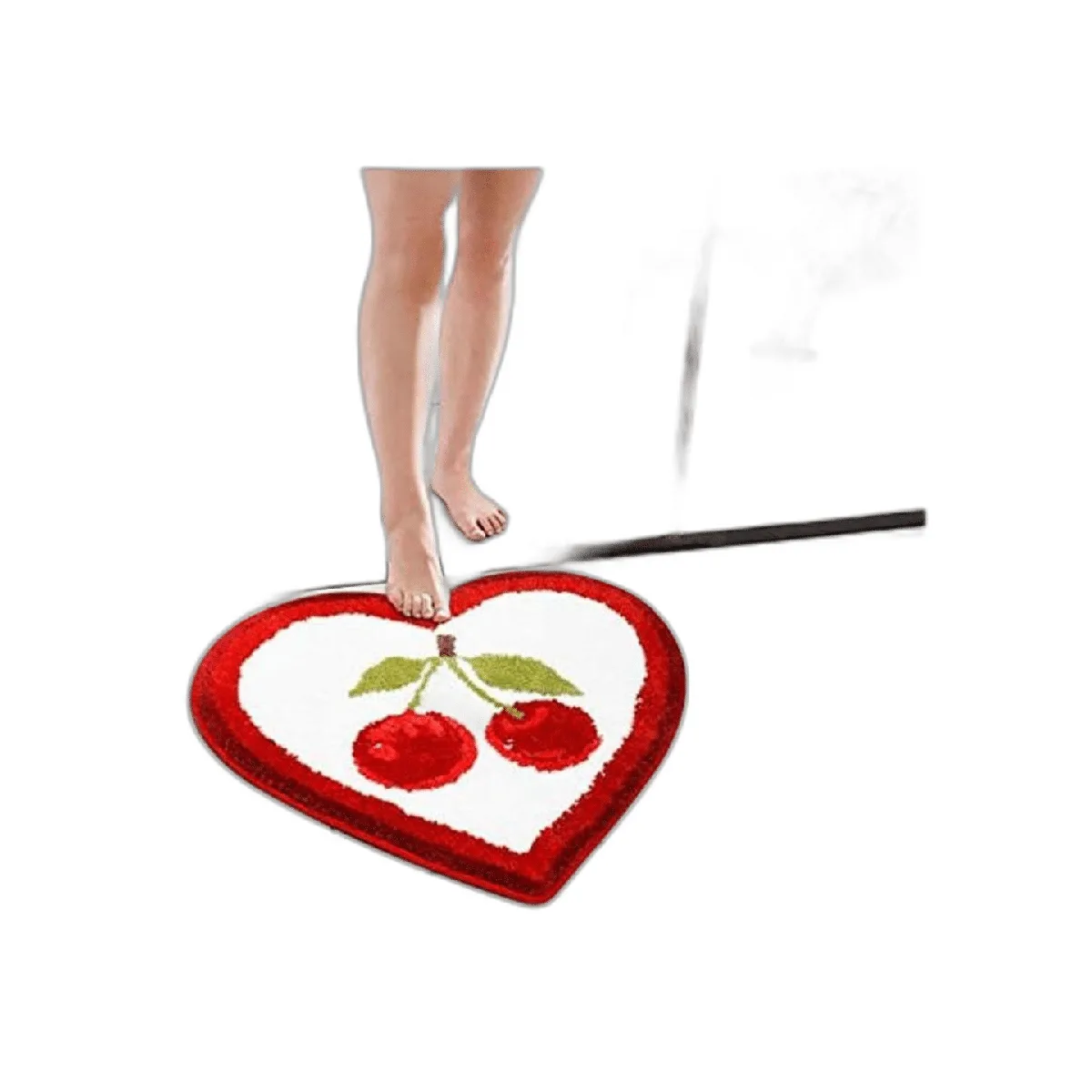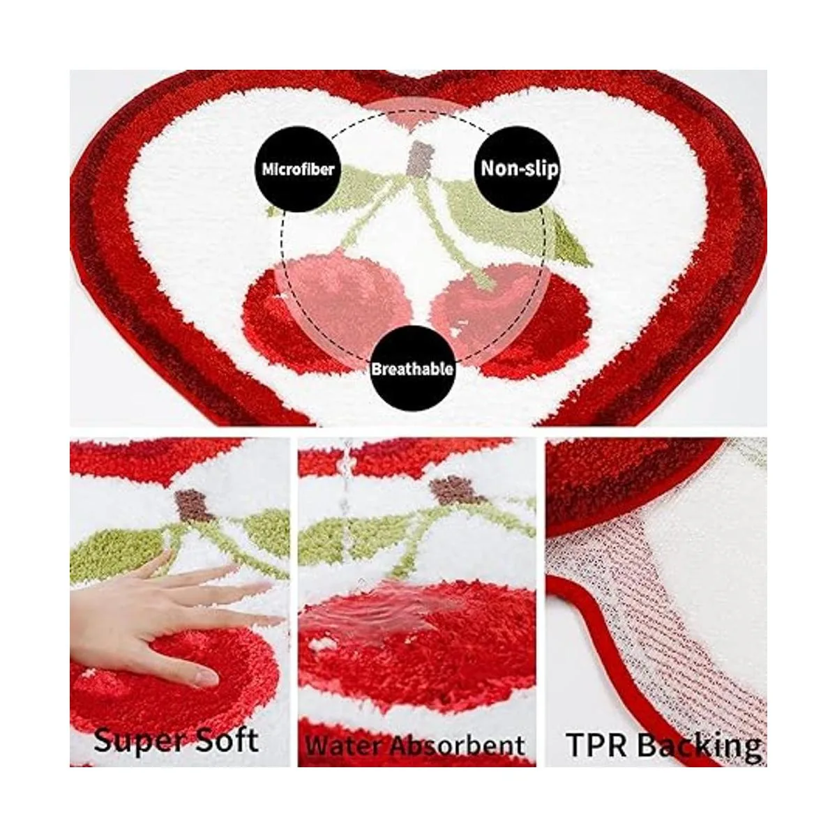 Tapete de baño de cerezo, bonito tapete de baño con frutas en forma de corazón, antideslizante, absorbente, lavable, 25.6 x 23.6 pulgadas