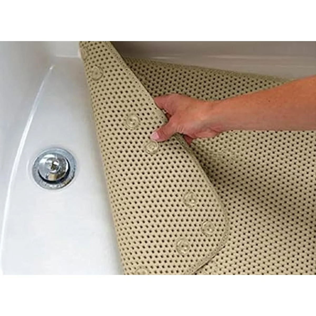 Tapete de baño de lujo antideslizante, de espuma suave para bañera de baño, tapete de bañera con agujeros de drenaje, ventosas, 36 x 17 pulgadas, color caqui claro