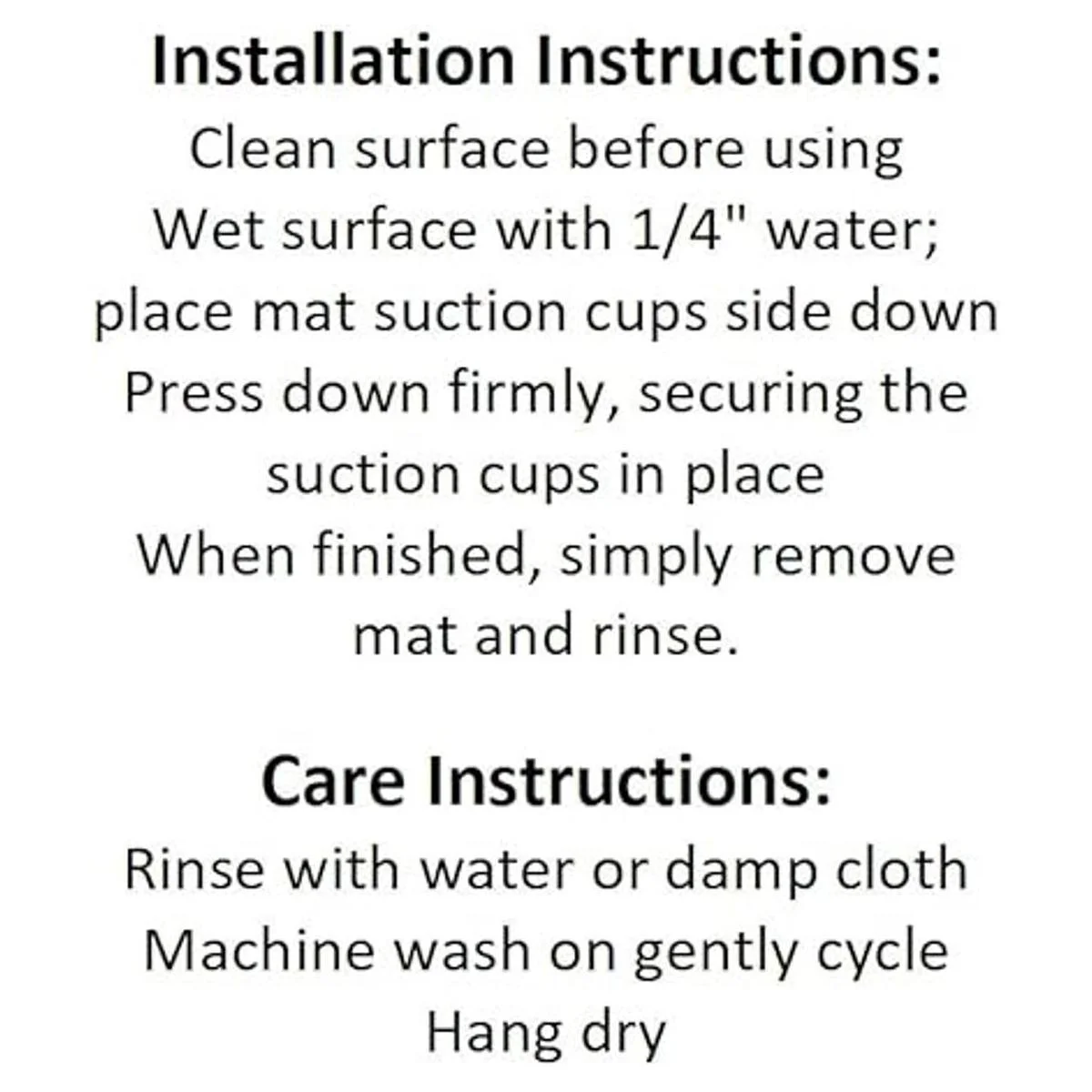 Alfombrilla de baño de fácil instalación: limpia bien la superficie de la bañera, luego humedece la superficie con agua de 1/4 pulgadas. Coloca tu alfombrilla de ducha antideslizante dentro de la bañera y presiona firmemente hacia abajo las ventosas para un agarre apretado. Enjuaga la alfombrilla de baño después de cada uso y deja secar