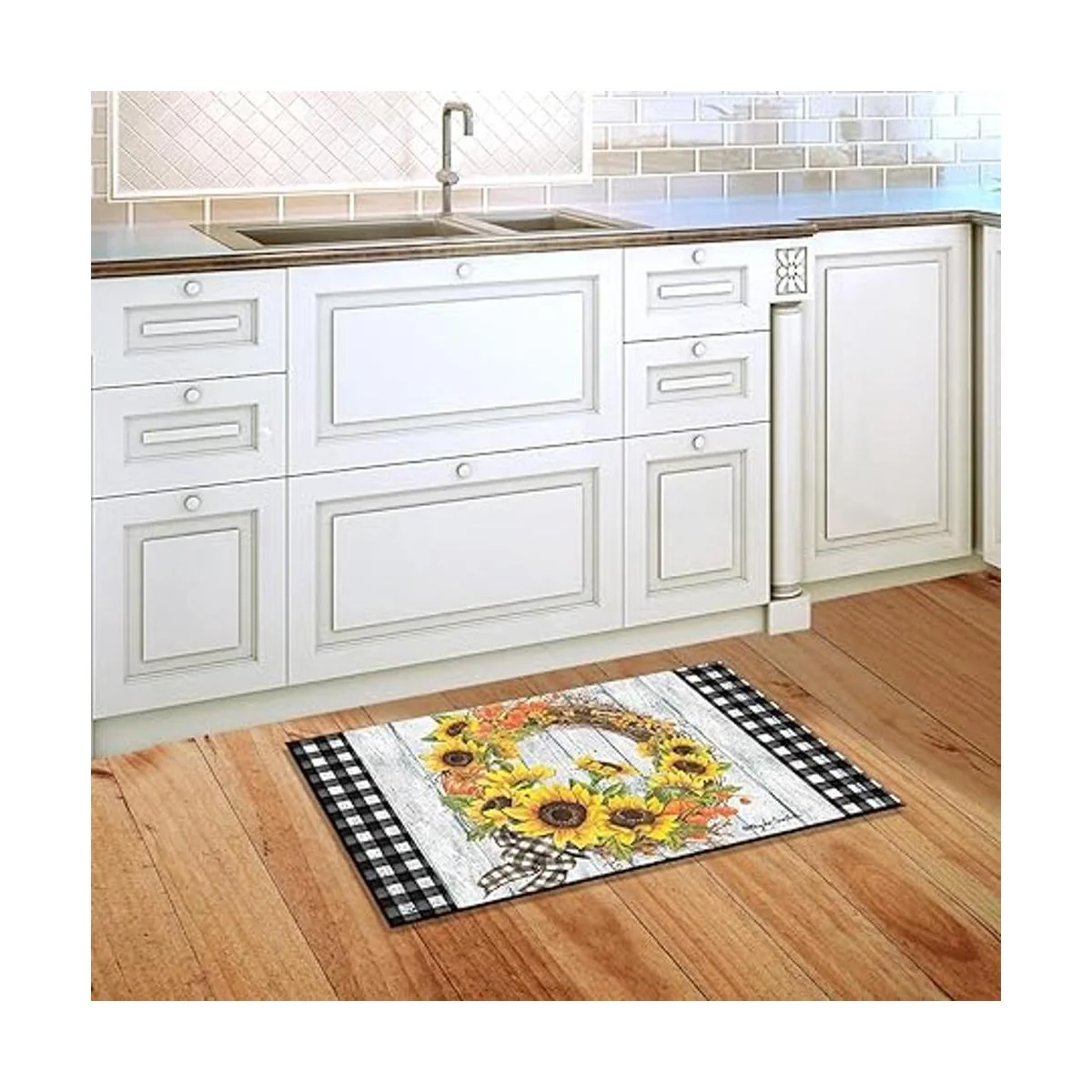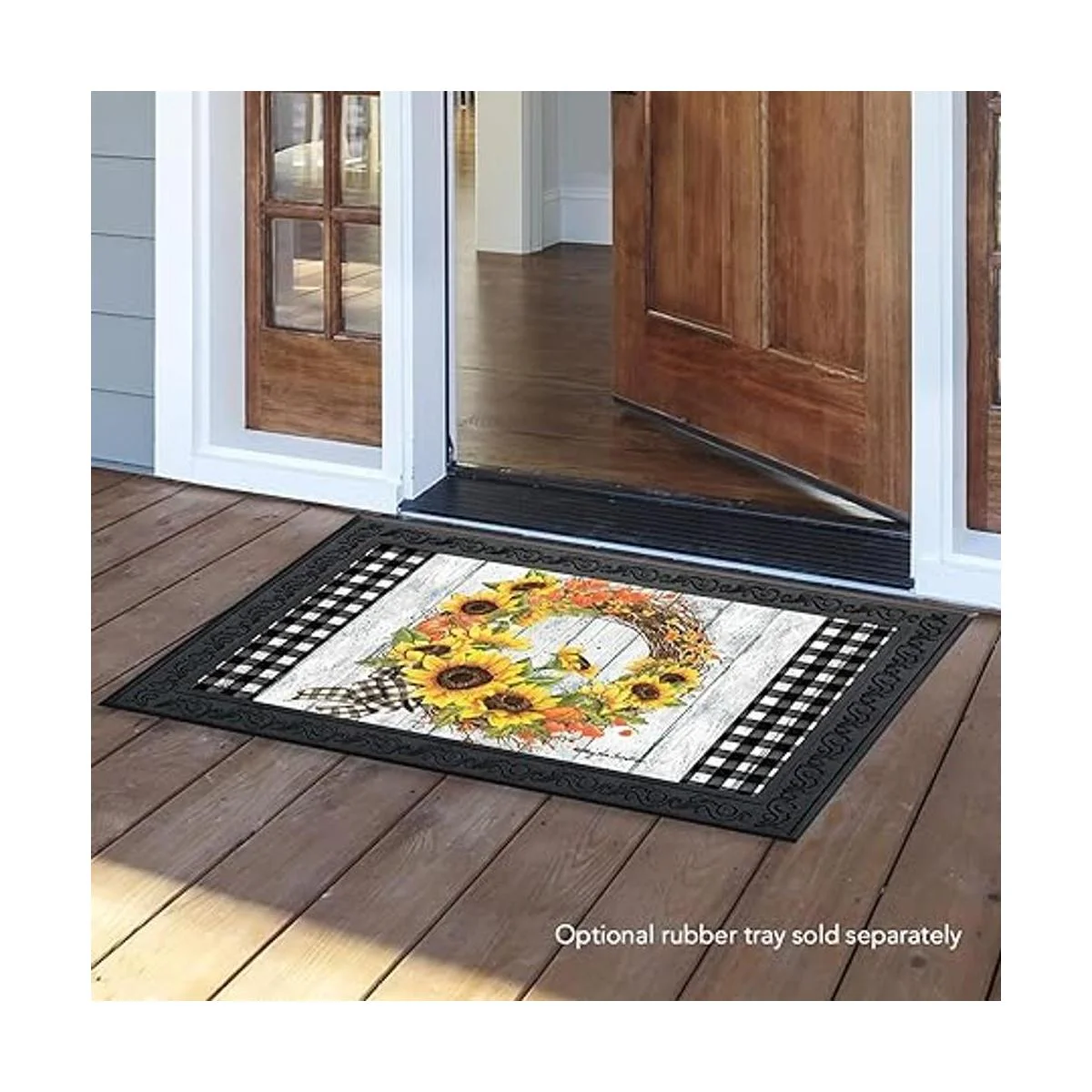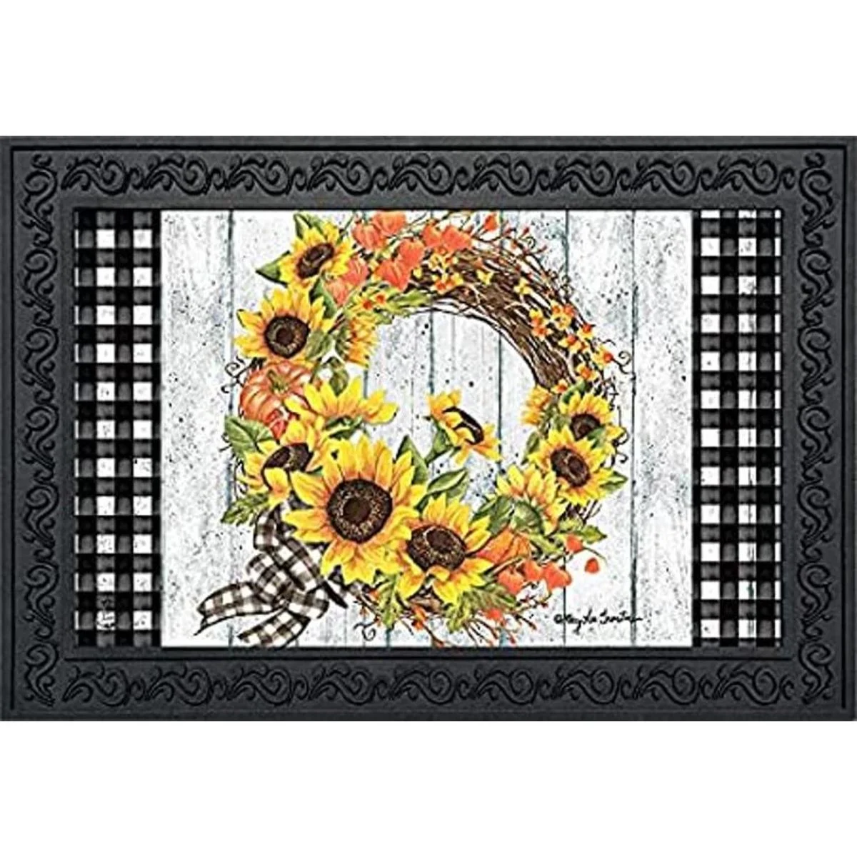 Tapete de bienvenida con corona de girasol y otoño, floral, para interiores y exteriores, 30 x 18 pulgadas