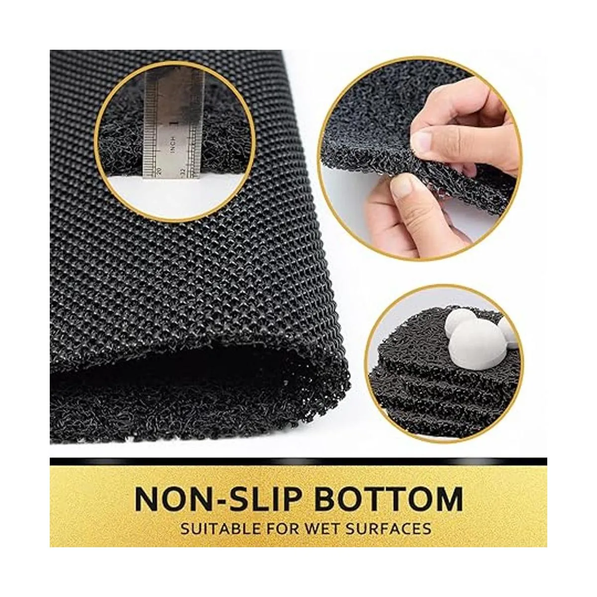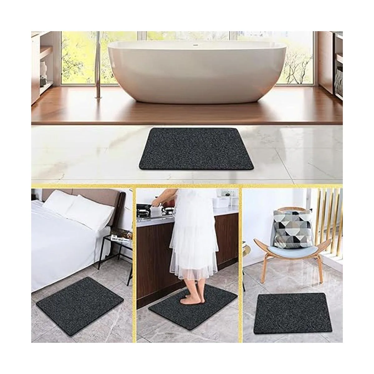 Antideslizante: respaldo antideslizante sin ventosas, adecuado para superficies texturizadas. Grueso y acolchado cuando estás de pie en él. Sin ventosas que acumulen suciedad y moho. Adecuado para ancianos, niños y bebés para usar en casa.