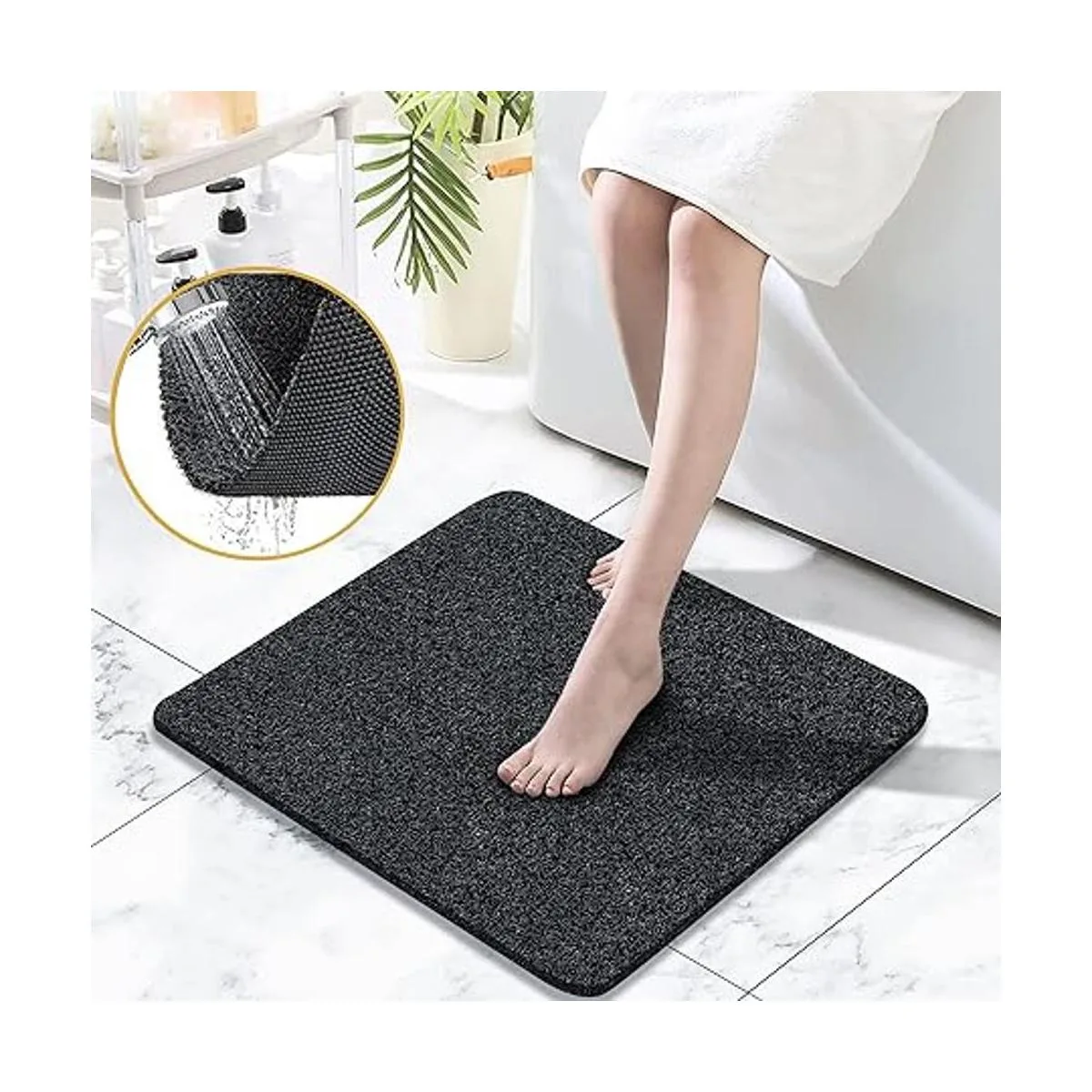 Tapete de ducha antideslizante sin ventosas, 24 x 24 pulgadas, tapete de baño de PVC para superficie texturizada de tina, ducha, baño, secado rápido negro