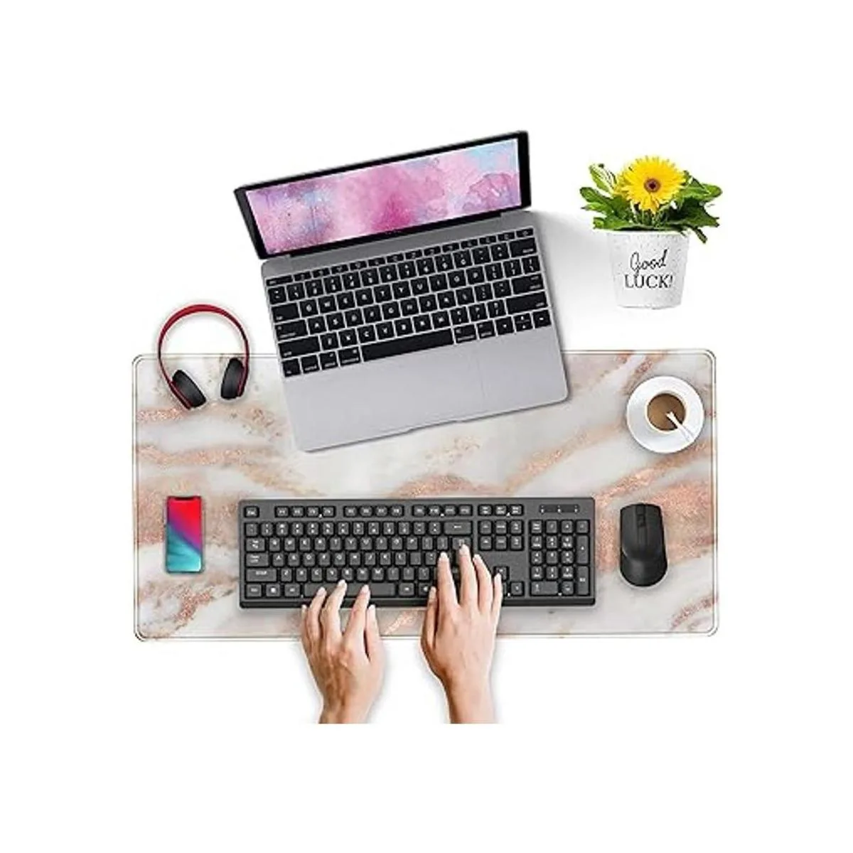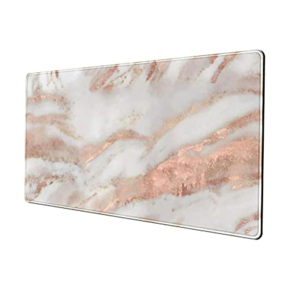 Tapete de escritorio de mármol dorado rosa, bonita decoración de escritorio, tapete de mouse metálico de lujo grande para juegos 31.5 x 15.75 pulgadas, tapete de teclado femenino para mujer, tapete de escritorio para computadora para trabajooficina y hogar