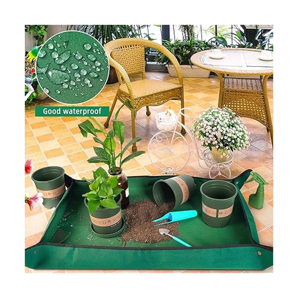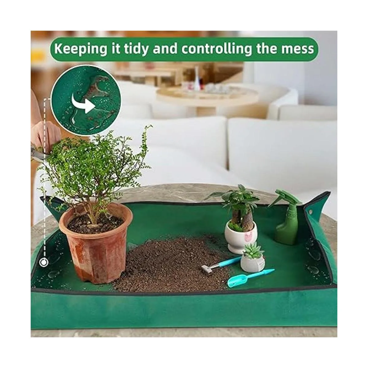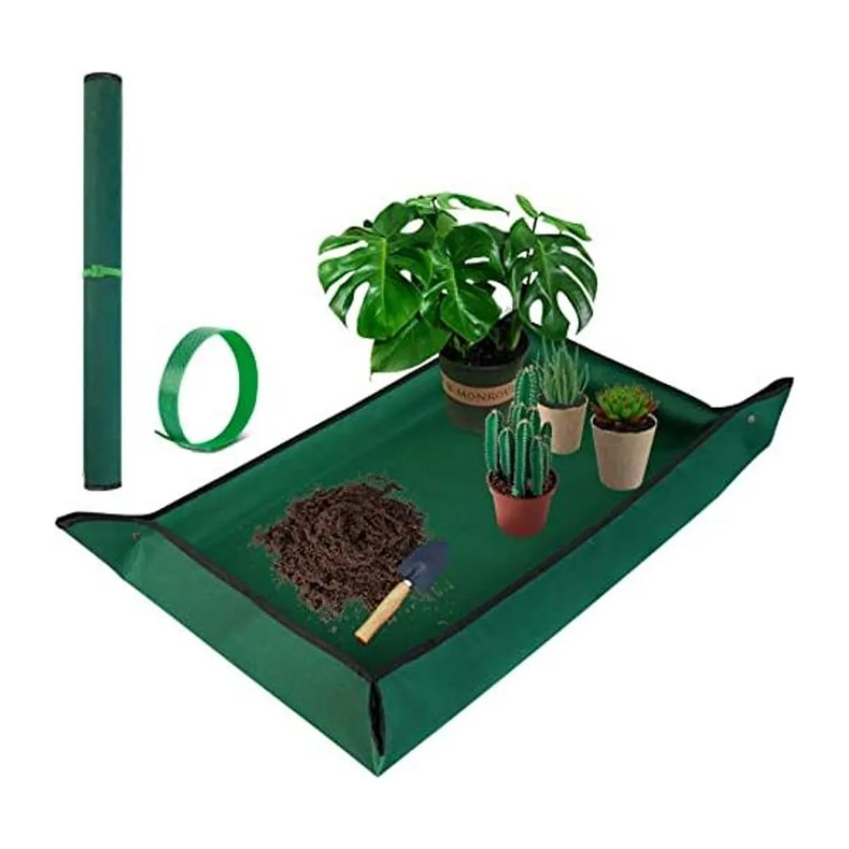 Tapete de reposo para trasplante de plantas de interior y control de desorden, 43 x 29 pulgadas, impermeable, grueso, plegable y fácil de limpiar, tapete de trabajo de jardinería y tapete de plantas suculentas, color verde, grande