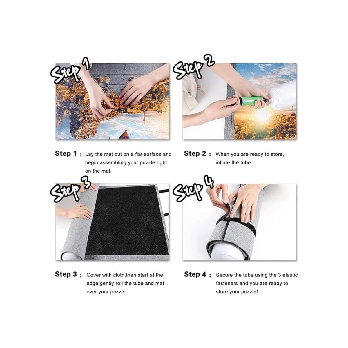 El kit definitivo ideal: en comparación con otros productos, nuestra alfombrilla enrollable para rompecabezas tiene todos los accesorios incluidos: 1 alfombrilla de fieltro antideslizante, 1 tubo inflable, 1 bomba de mano, 1 bolsa de almacenamiento, 3 correas de velcro ajustables, nuestro kit de rompecabezas incluye todas las características que has soñado