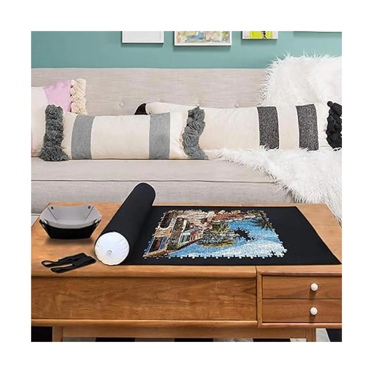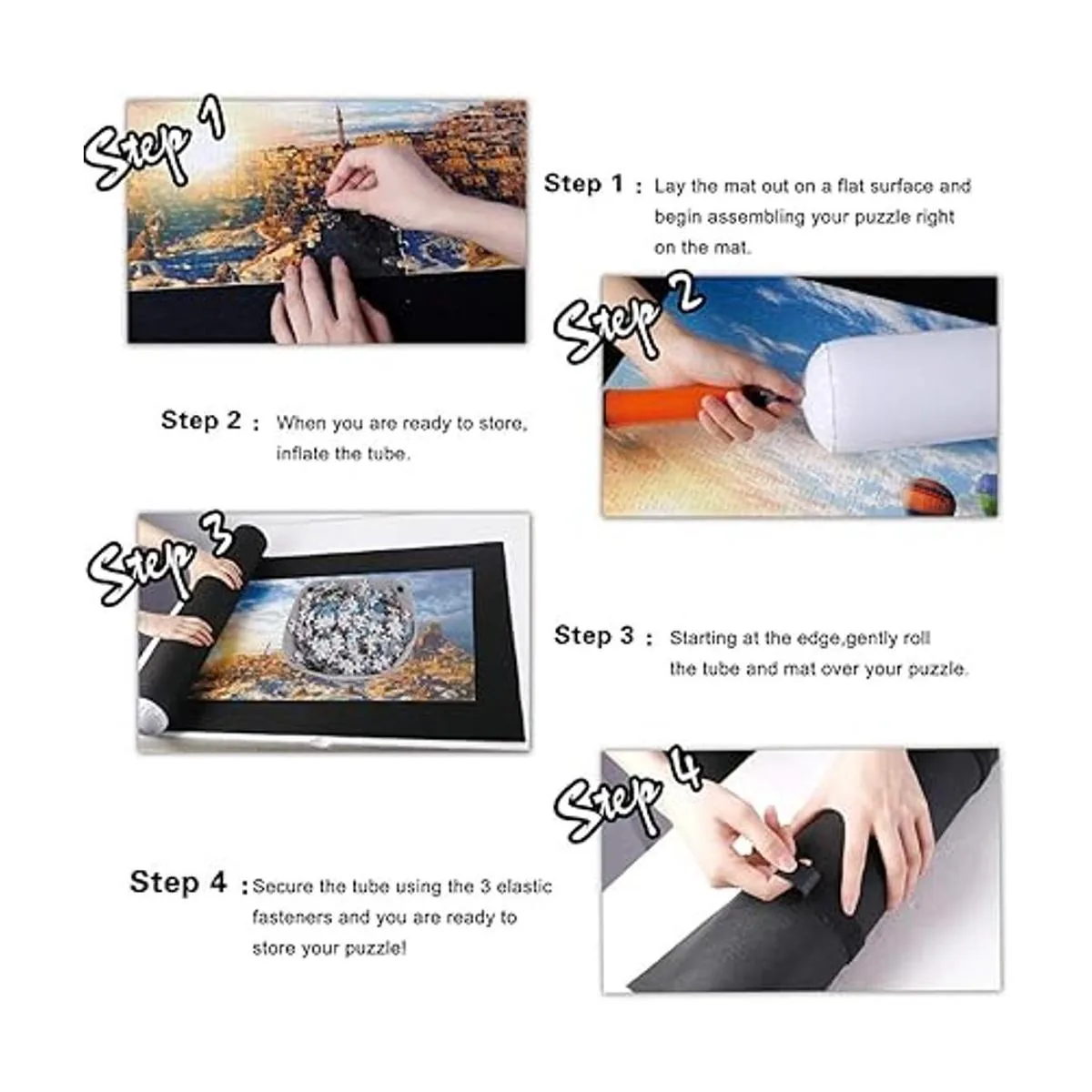 Fácil almacenamiento y transporte: mantén tus rompecabezas completos intactos en la alfombrilla de boquilla. Lo que debes hacer es inflar el tubo y enrollar la alfombrilla. No solo mantendrá todas las piezas en su lugar, sino que el tubo compacto para empacar y transportar a cualquier lugar