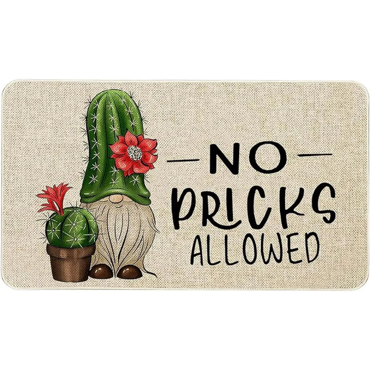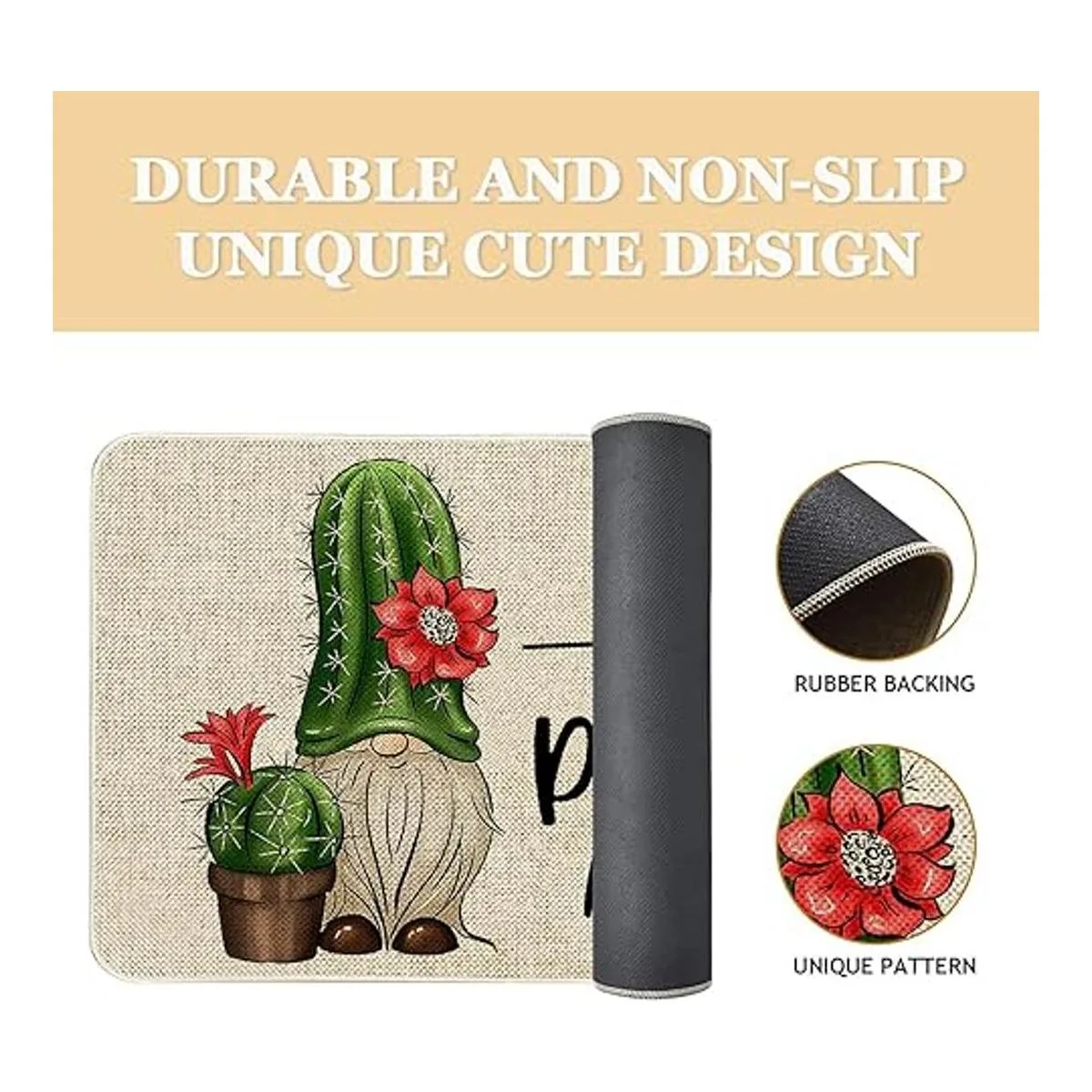 Tapete de verano para puerta de 30 x 17 pulgadas, sin púas, tapete de gnomo de cactus para interiores y exteriores, tapete antideslizante para decoración de verano de goma de bienvenida