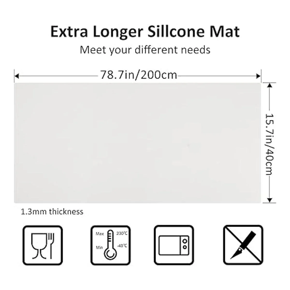 Tamaño extra grande y grueso: tamaño de 3.098 x 0.618 x 0.051 in largo x ancho x grosor, nuestra alfombrilla de silicona es hasta un 30 más gruesa que las alfombrillas de silicona normales 0.039 in, más fuerte y más duradera. Las alfombrillas de encimera de cocina se colocan planas sin arrugas, disponibles para cortar la alfombrilla a diferentes tamaños y formas de acuerdo a tus necesidades.