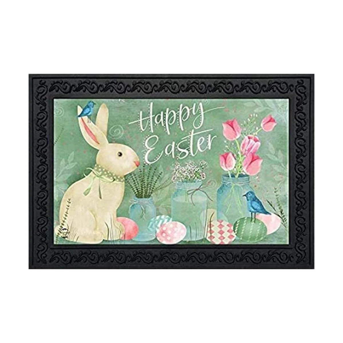 Tapete primitivo de conejo de Pascua y tulipanes floral, 30 x 18 pulgadas, Briarwood Lane