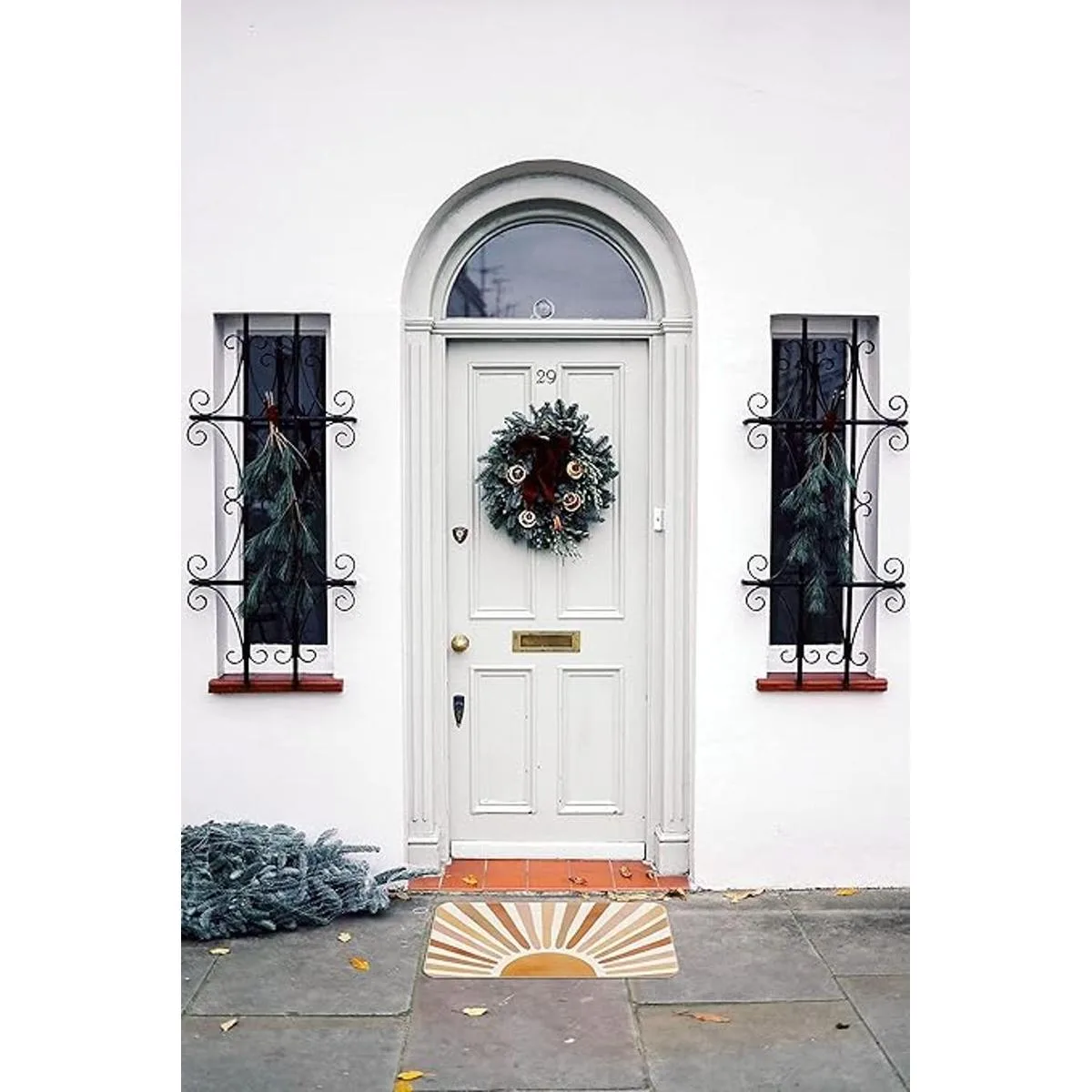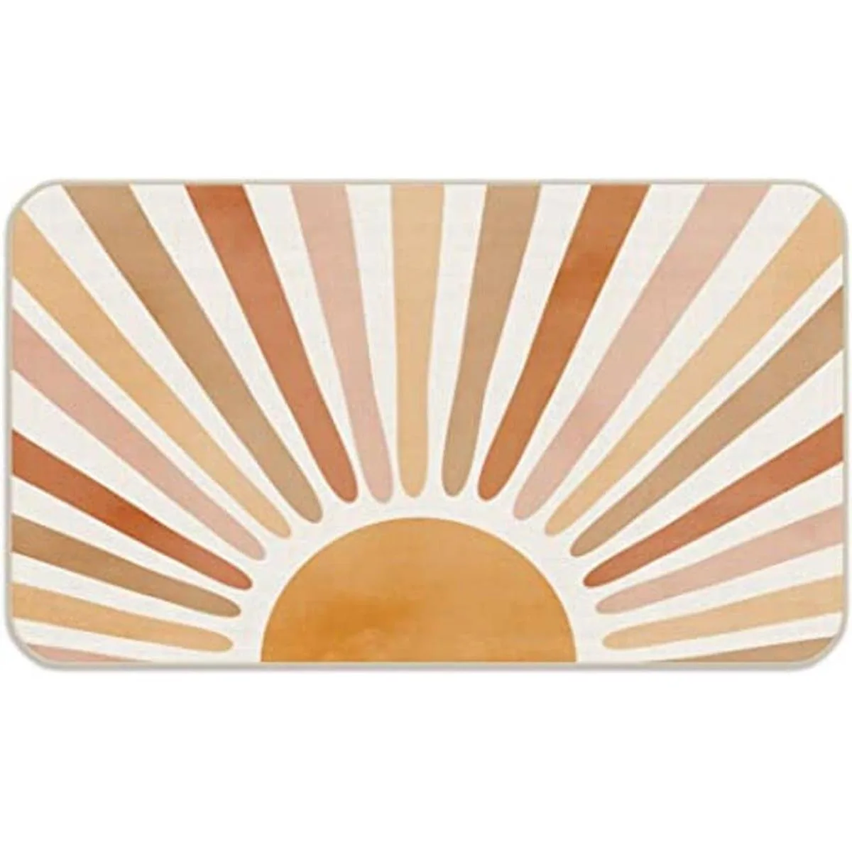 Tapete retro neutro minimalista, bohemio, amanecer de mediados de siglo, atardecer de 30 x 17 pulgadas, tapete para puerta de entrada, entrada de puerta delantera, decoración de interiores y exteriores, regalos para amantes del sol, regalos bohemios para niñas y mujeres