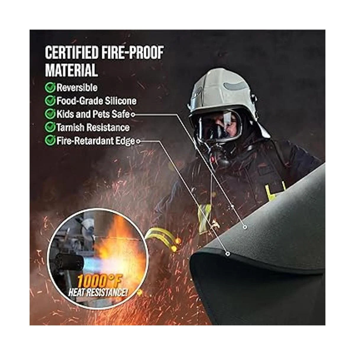 1000F hace que nuestra alfombrilla sea la alfombrilla ignífuga perfecta o alfombrillas de parrilla para protector de cubierta de parrilla al aire libre. Diseñado especialmente para azulejos, madera y cubiertas compuestas. Viene con bolsa con cordón y hermosa caja premium, perfecta para regalar durante ocasiones especiales.