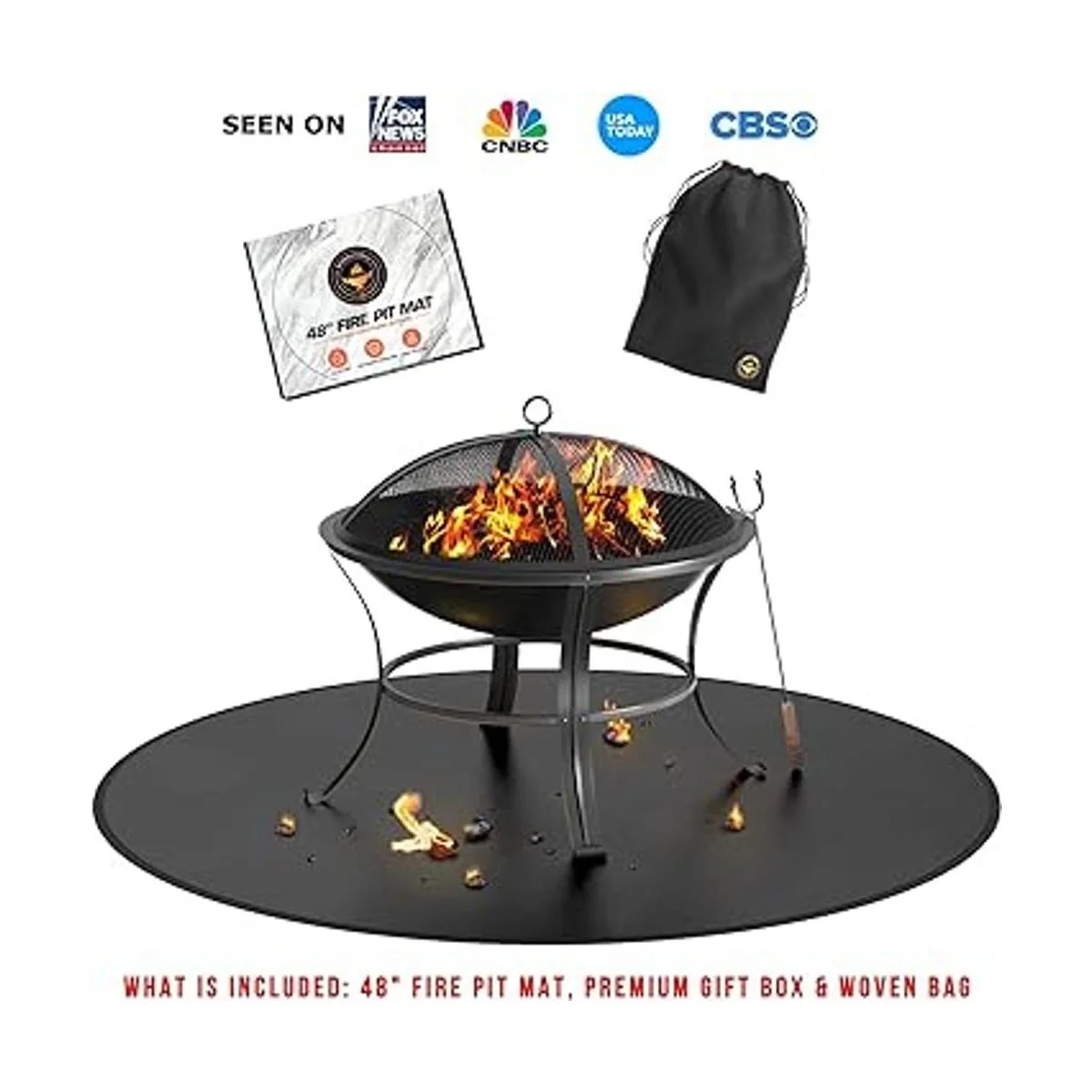 Protección de césped, patio y cubierta al aire libre contra brasas calientes con alfombrilla ignífuga para hoguera. Compatible con la más amplia gama de tamaños y modelos de hoguera, incluyendo estufa de propano y parrilla. Viene con bolsa tejida, caja premium y receta secreta de salsa para barbacoa. Satisfacción garantizada.