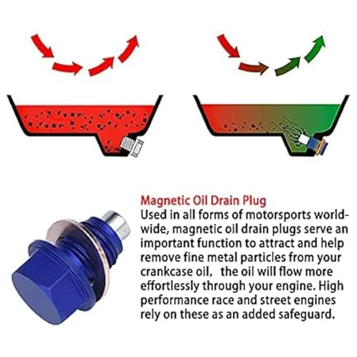 Función importante: los tapones magnéticos de drenaje de aceite sirven una función importante para atraer y ayudar a eliminar partículas de metal finas del aceite del cárter, el aceite fluirá más sin esfuerzo a través de tu motor. Los motores de carreras y calles de alto rendimiento confían en estos como una protección adicional.