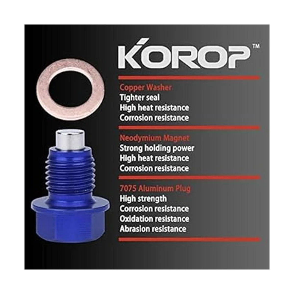 Incluye: 1 tapón de drenaje de aceite hecho de aluminio 7075 con imán de neodimio, 3 arandelas hechas de cobre.