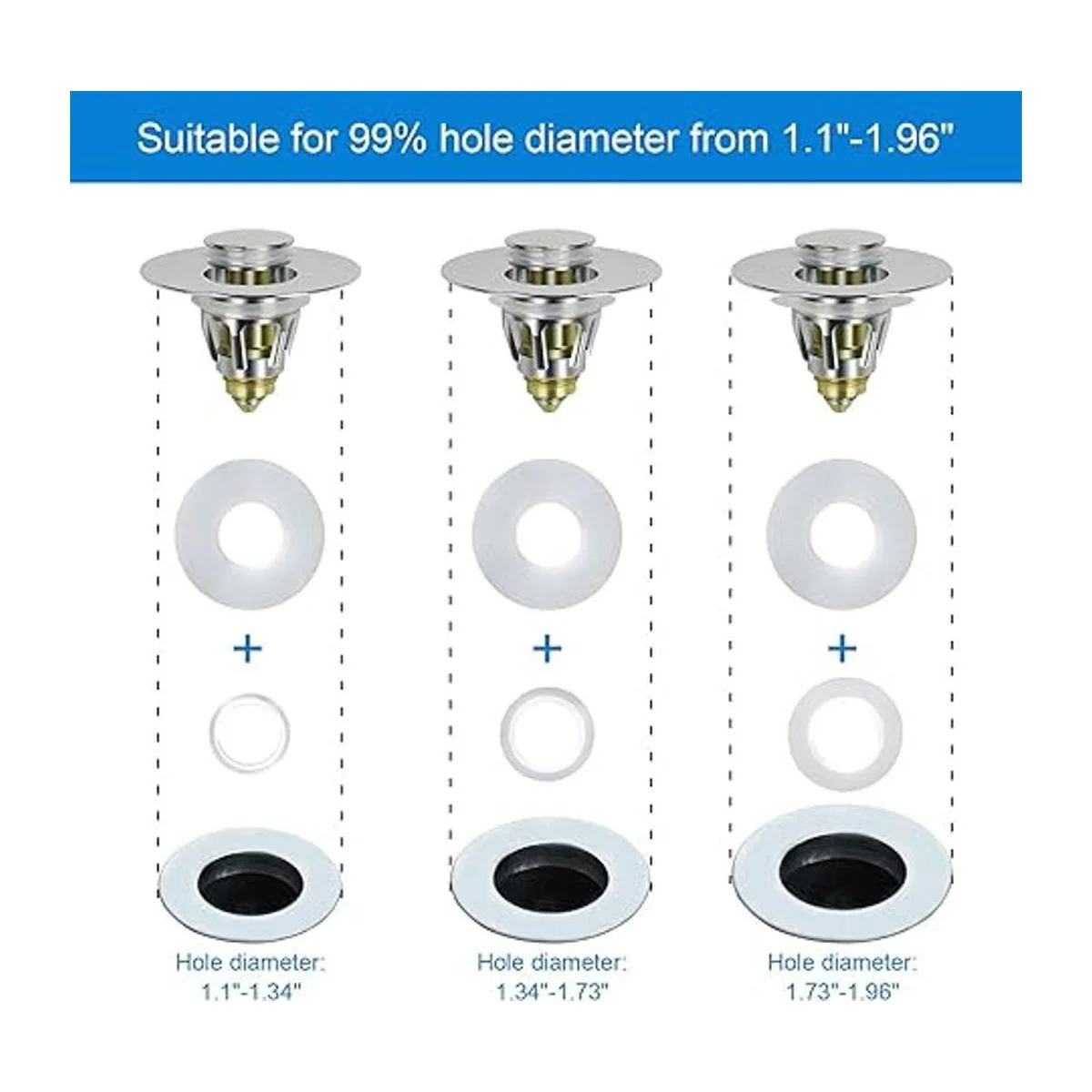 Adecuado para orificio de drenaje de 1.1 a 1.96 pulgadas Nuestro tapón de bañera se puede utilizar para el 99 de los agujeros de drenaje estándar de EE. UU. Diámetro interior: 1.102 in1.929 in. Especialidad perfecta para desage de fregadero estándar de EE. UU. 1 1/4 pulgadas y 1 1/3 pulgadas. No importa el lavabo, los desages del lavabo del baño o los desages de la bañera de la ducha, puede funcionar con todos.