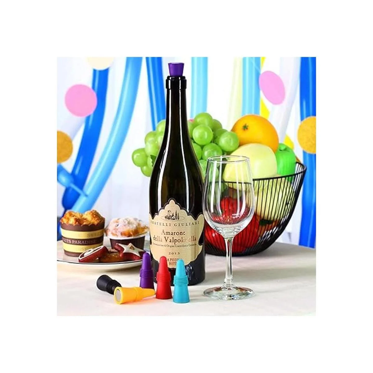 Ocasión adecuada: estos tapones de vino de silicona reutilizables se pueden ver a menudo en fiestas de cumpleaños, reuniones familiares, bodas, Navidad, día de Acción de Gracias, día de San Valentín u otras ocasiones formales, también aplicables para vino, bebidas, aceite, vinagre, salsa de soja u otras botellas