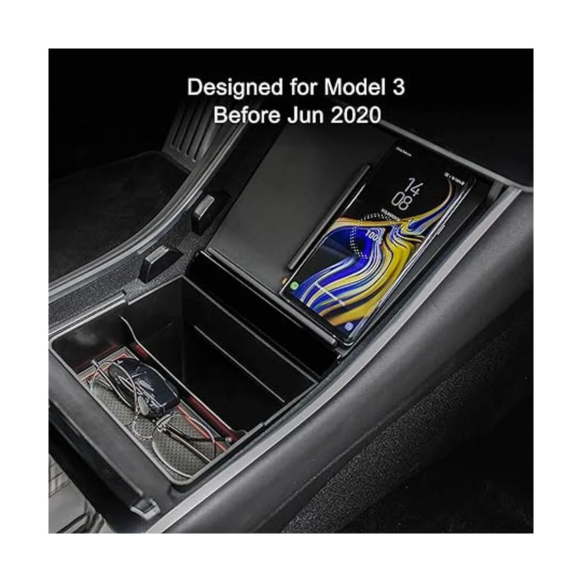 Ajuste: La almohadilla de carga inalámbrica para teléfono se adapta a la consola central de vehículos de Tesla M3 Standard Range Plus/Mid Range/Long Range/Performance P50 P75 2017 2018 2019, no es compatible con 2019 Standard Range.