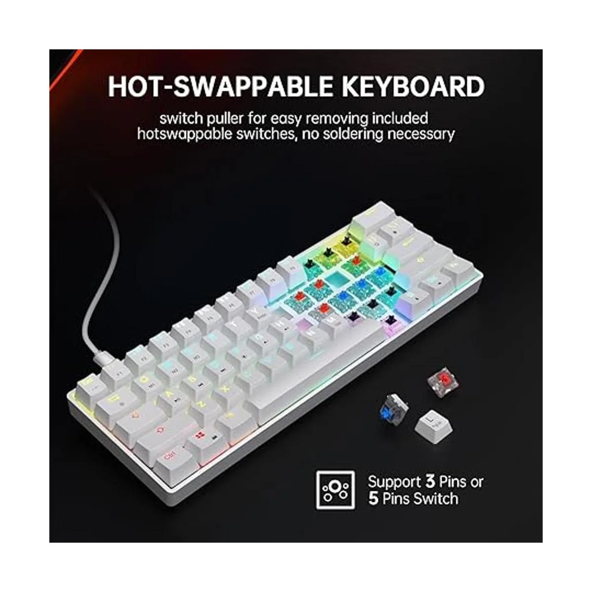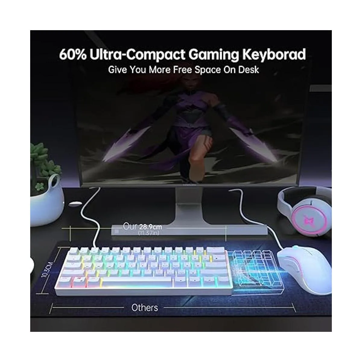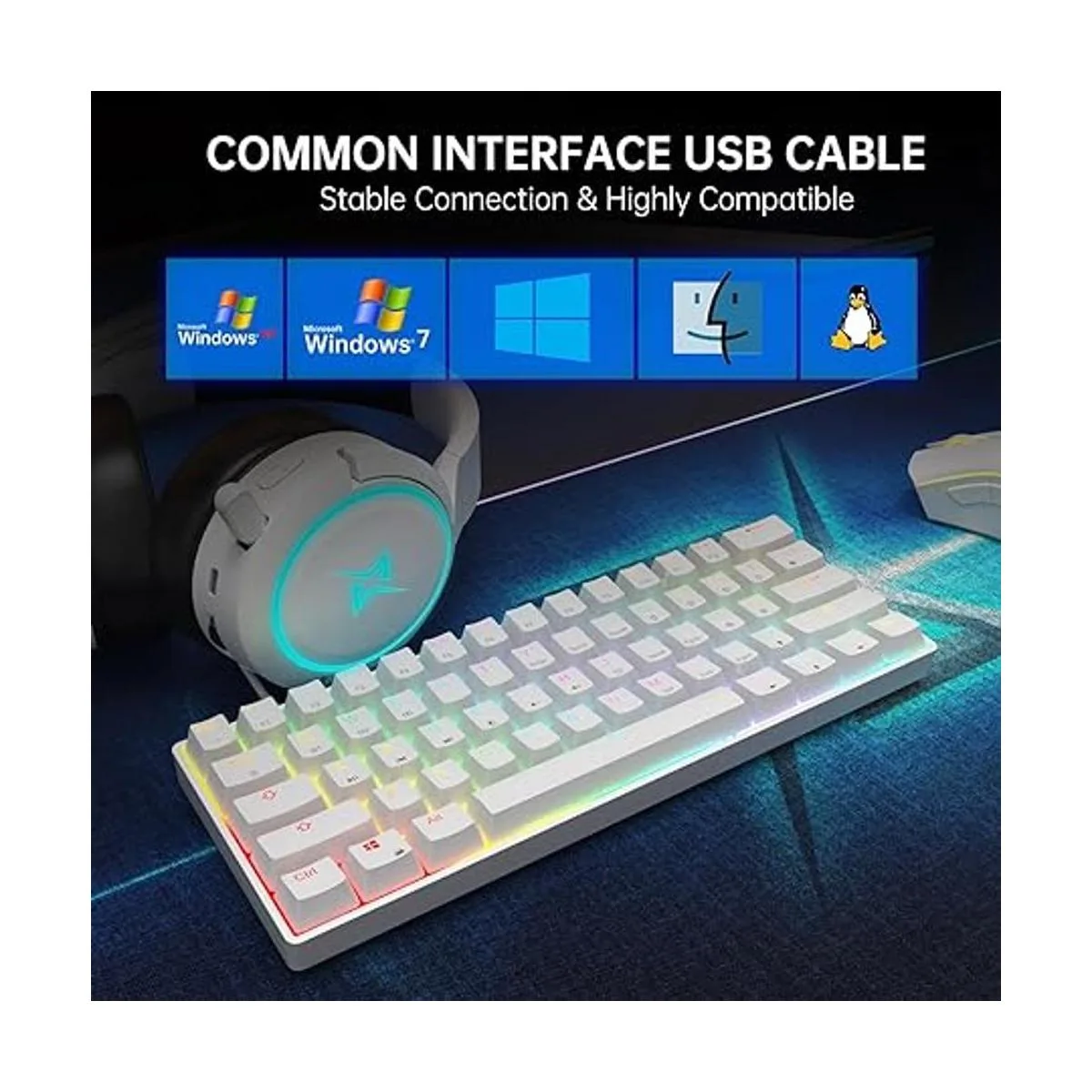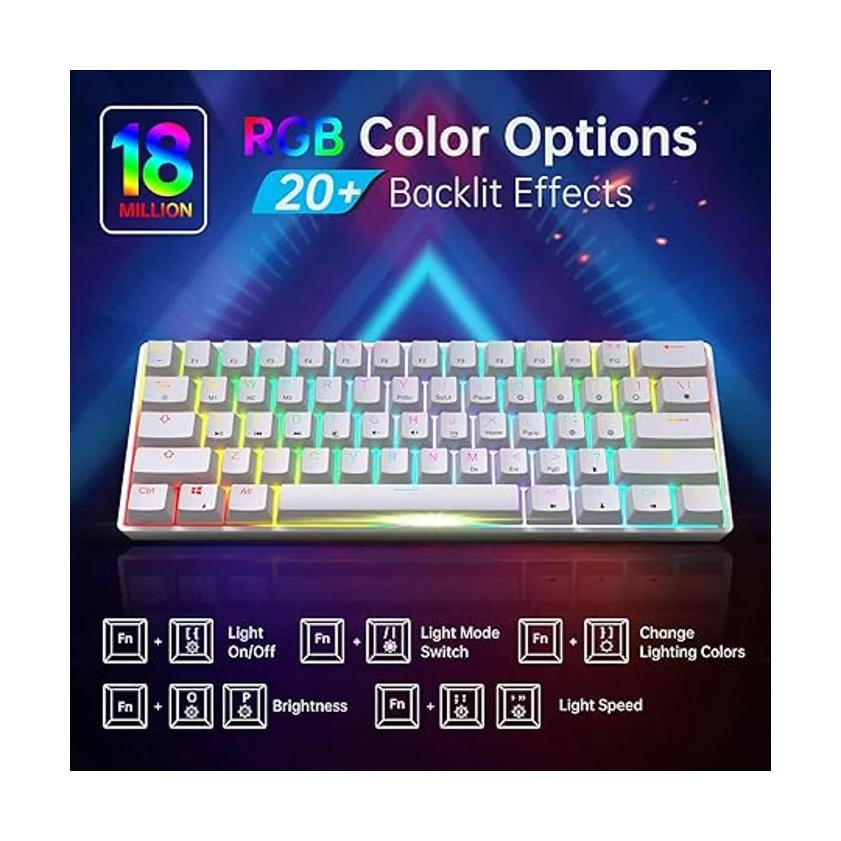 Targeal Teclado mecánico para juegos 60 61 teclas Gateron Red Switch silencioso teclado de computadora de oficina multicolor RGB Rainbow LED retroiluminado programable para PCWindowsMac Gamer Cable USB Blanco