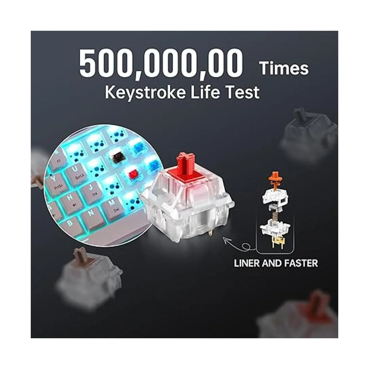 Interruptor rojo intercambiable en caliente: el interruptor rojo óptico Gateron con su baja presión de disparo, es la selección más adecuada para escribir y trabajar por computadora durante mucho tiempo; el diseño intercambiable en caliente te permite reemplazar y hacer libremente el interruptor de acuerdo a tus necesidades, no necesita soldadura ni desoldador.