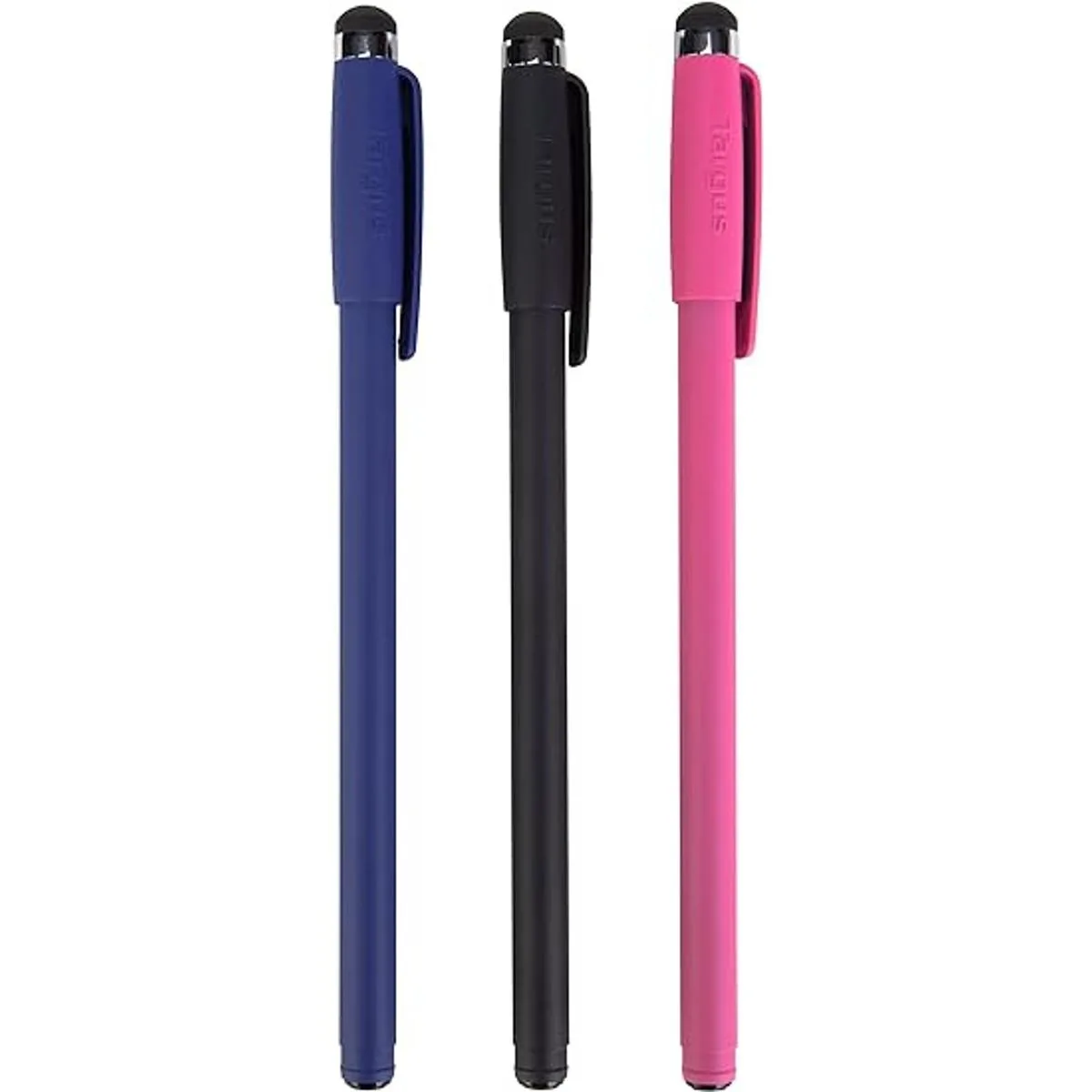 Targus Lápiz óptico para tabletas, iPad de Apple, Samsung Galaxy y todos los dispositivos de pantalla táctil con punta de goma delgada y duradera, paquete de 3, negroazulrojo AMM0601TBUS