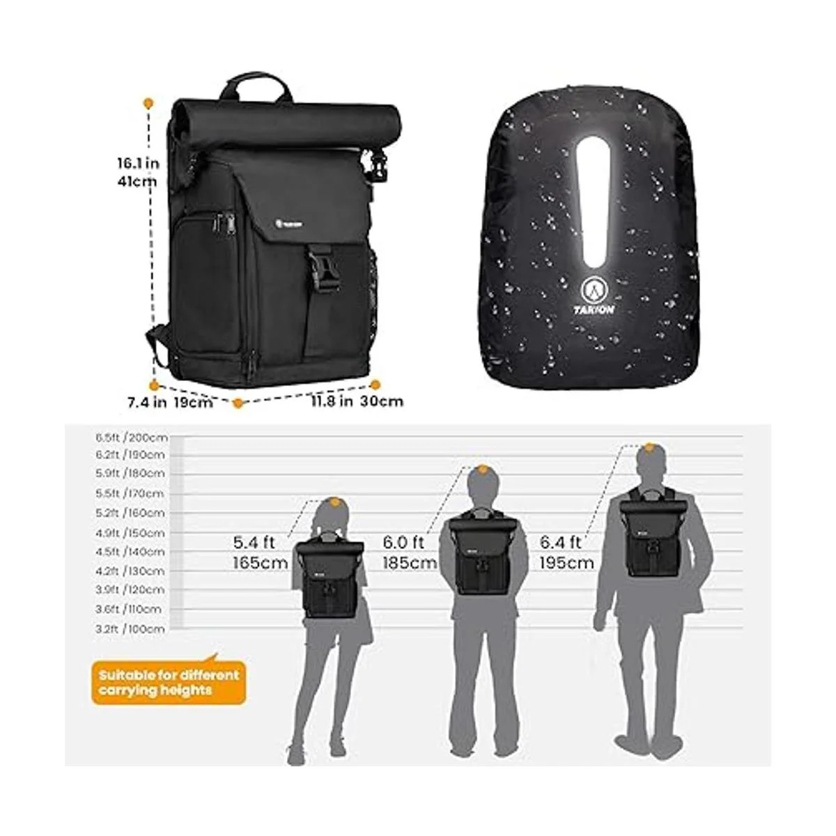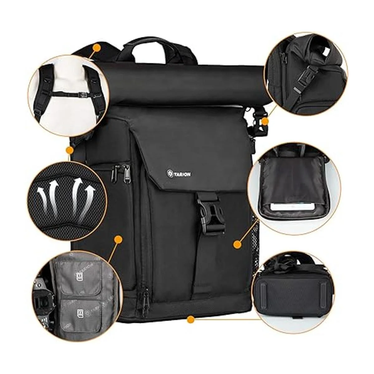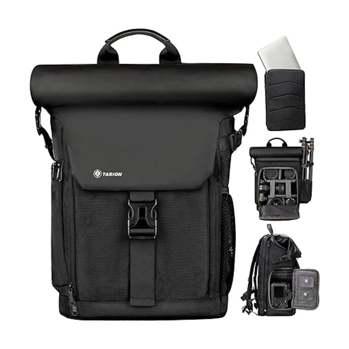 TARION Mochila de cámara con funda extraíble de 16 pulgadas, bolsa de lona para cámara de fotografía para cámaras réflex digital sin espejo, videocámara incluye cubierta impermeable para la lluvia, mochila réflex digital negra