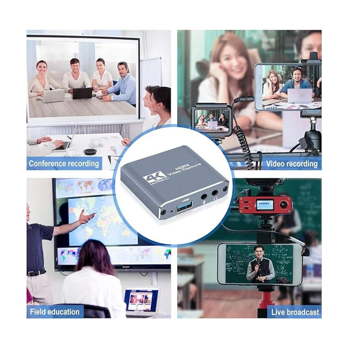 Entrada de micrófono de 0.138 in y salida de audio: con entrada de audio de micrófono adicional, esta tarjeta de captura HDMI 4K permite a los amantes de los juegos transmitir voz, grabar voz y añadir tu propia voz al juego a tiempo, mezclando audio de línea y audio de micrófono para jugar sin problemas. También puedes conectar el dispositivo de captura de audio y video con tus auriculares con puerto de salida de audio de 0.138 in.