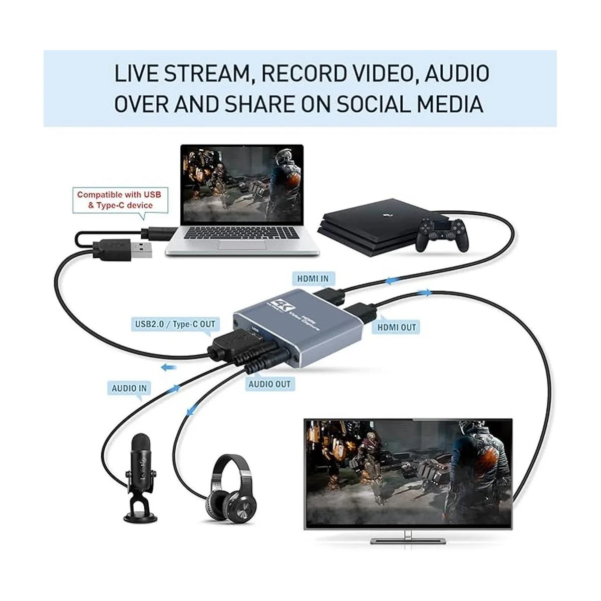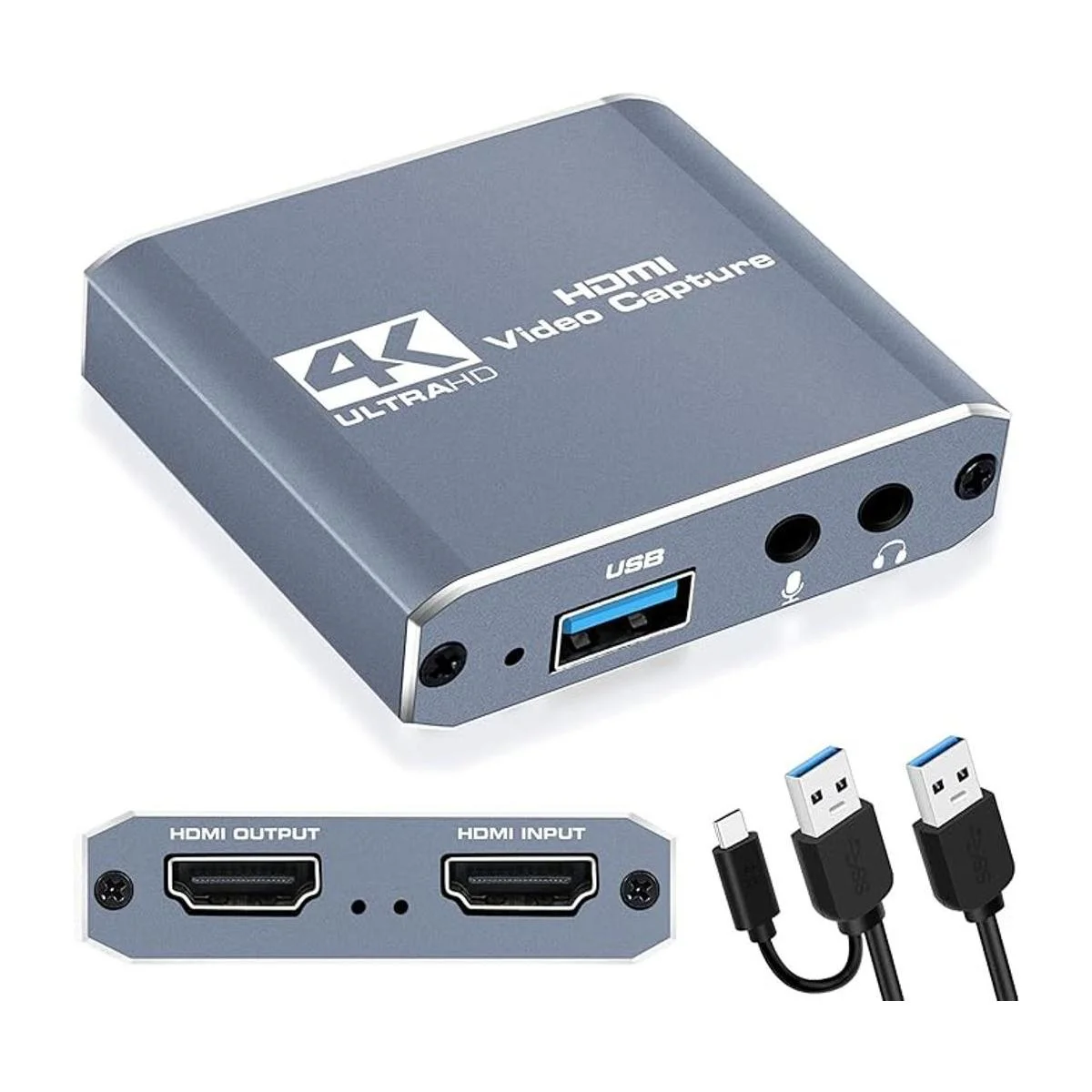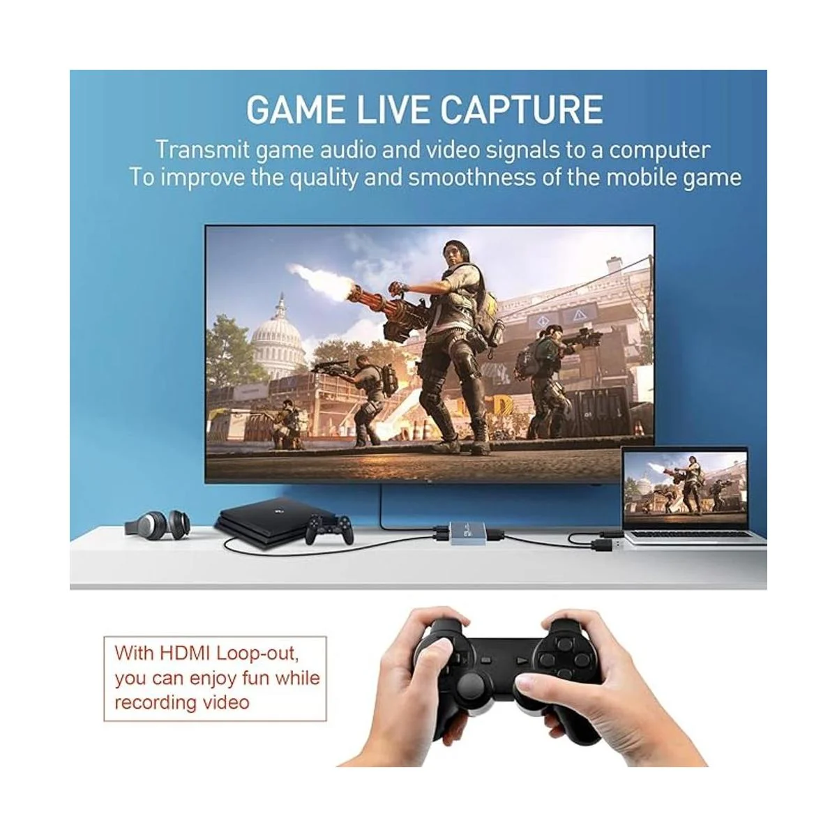 Tarjeta de captura de 1080p 60fps, tarjeta de captura de video HDMI 4K a USBtipo C con micrófono y bucle HDMI, transmisión de grabación de baja latencia compatible con Nintendo SwitchPS4PS5Xbox One
