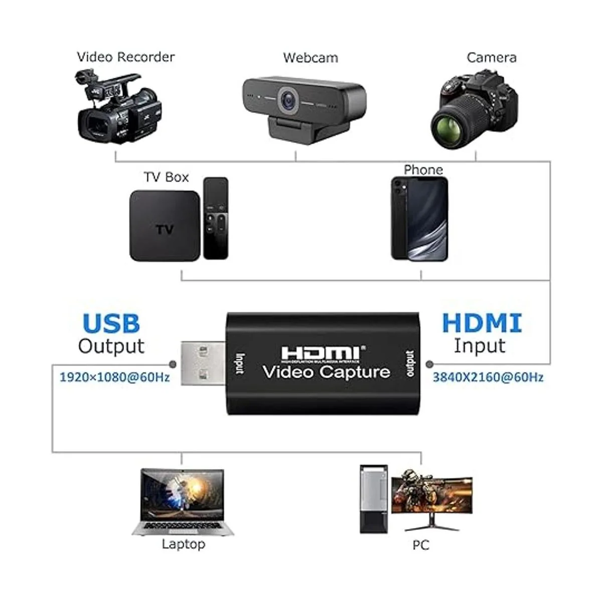 Tarjeta de captura de video HDMI 4K, tarjeta de enlace de cámara, adaptador de captura de audio, HDMI a USB 2.0, dispositivo de captura de grabación para transmisión, transmisión en vivo, videoconferencia, enseñanza, juegos negro