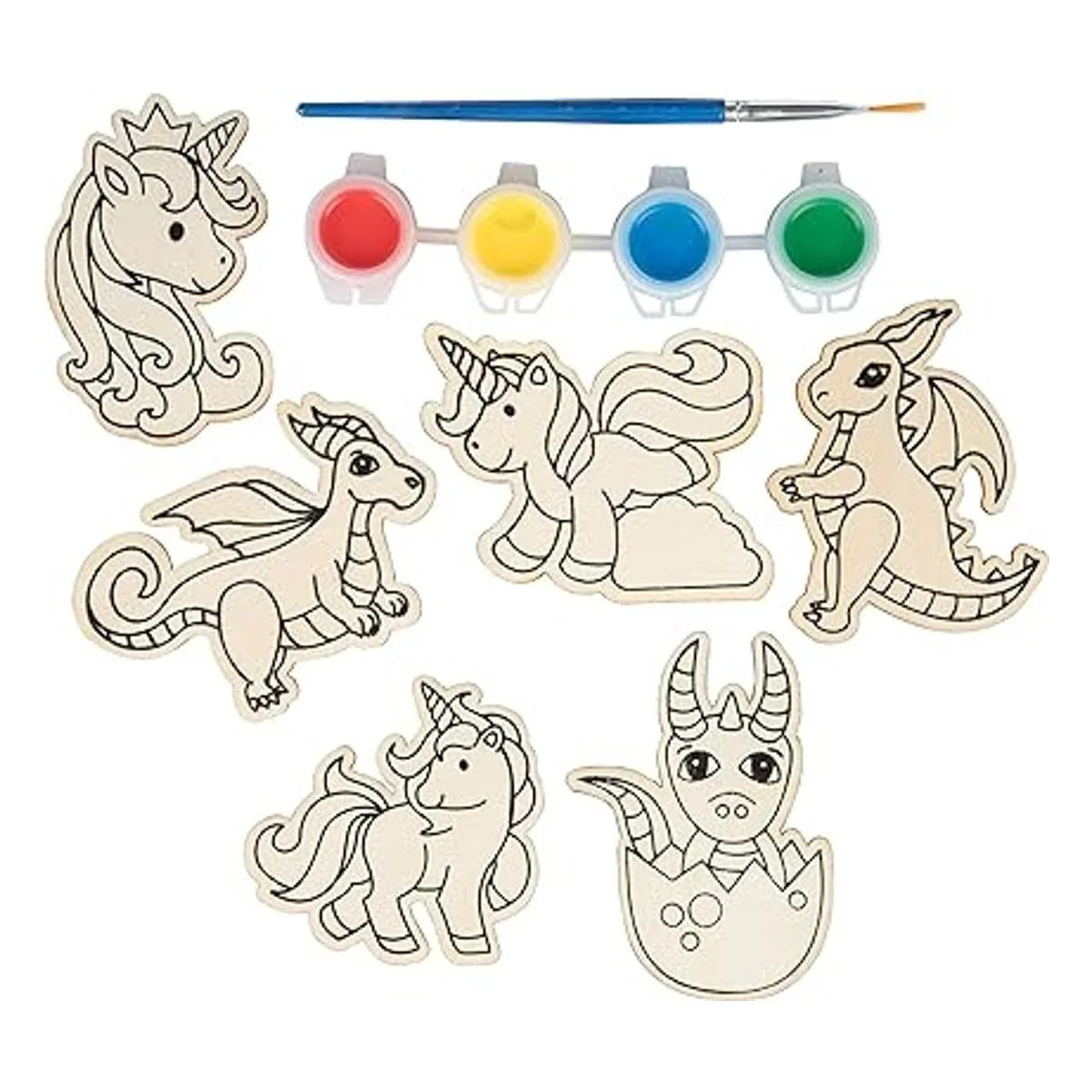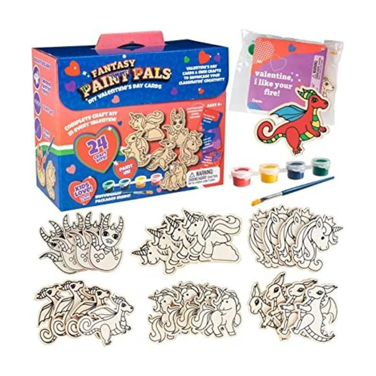 Tarjeta de San Valentín para niños manualidades de pintura de madera 24 quilates unicornio de fantasía kits de dragón calcomanías a juego para niños y niñas Cada kit tiene su propio pincelpintura, divertido y único regalo de intercambio escolar