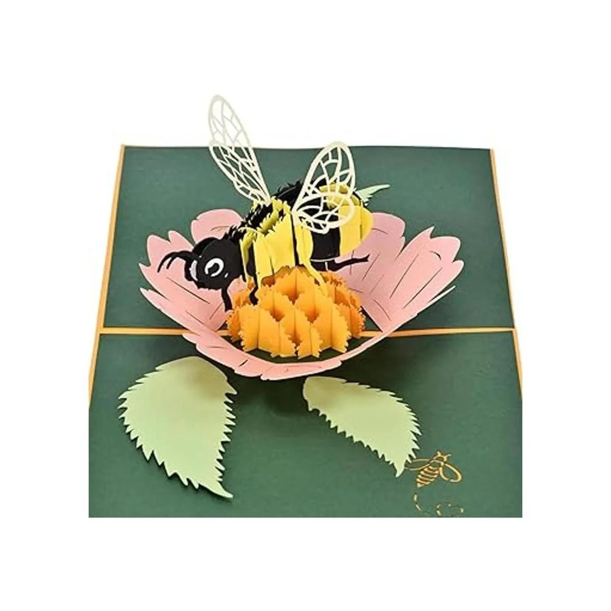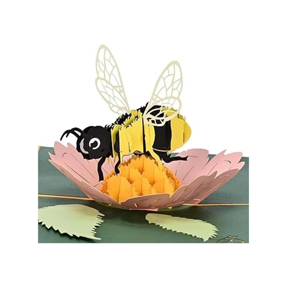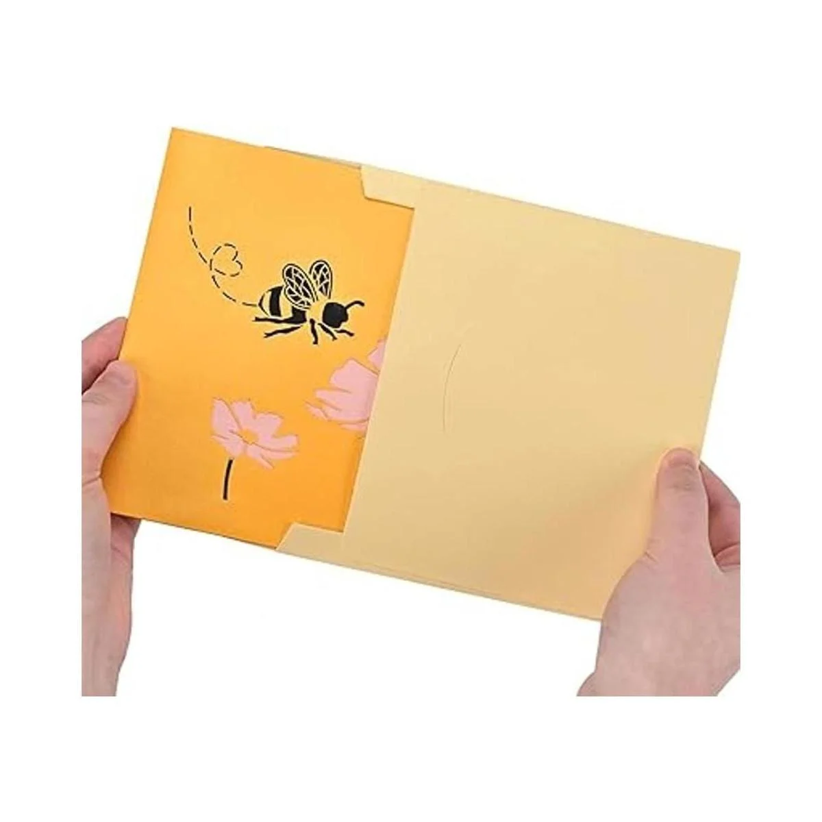 El momento de sorpresa: la tarjeta es plana cuando está plegada, el destinatario se sorprenderá cuando abra la tarjeta y la sensacional abeja de miel se despliega, sumergiéndose en el momento conmovedor.