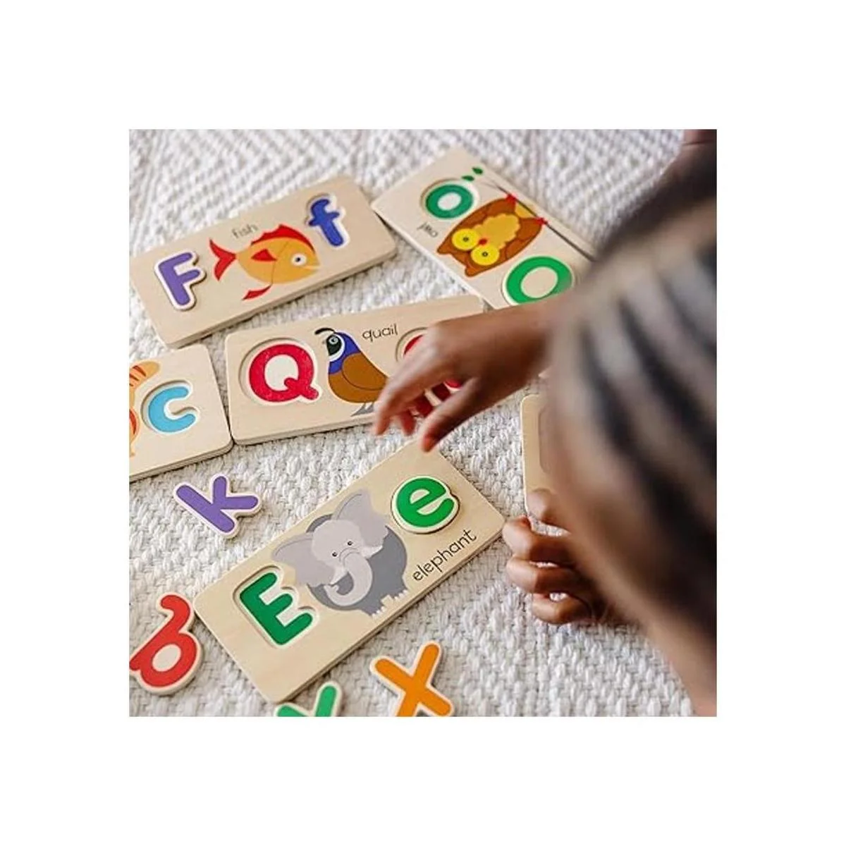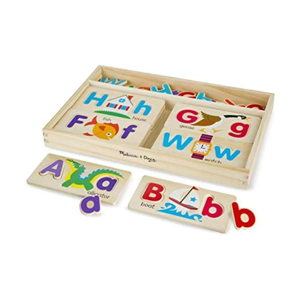 Tarjetas con imágenes del abecedario Melissa Doug juguete educativo con 13 tablas de madera de doble cara y 52 letras