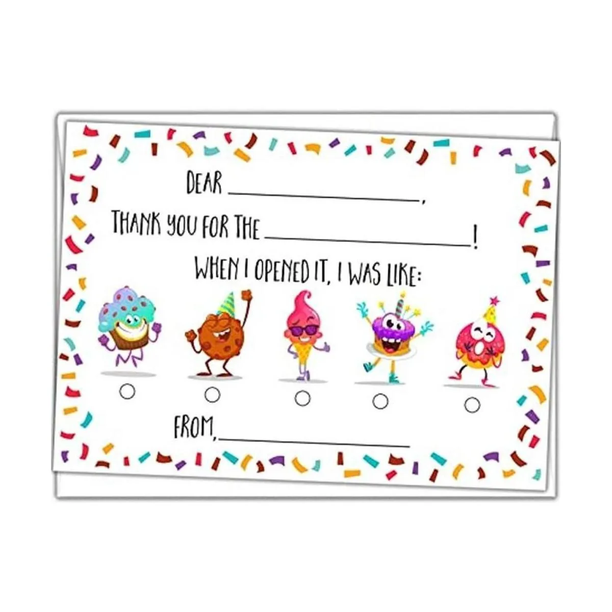 Divertido diseño de personaje: personajes coloridos y animados con borde de confeti que añaden diversión al proceso de decir gracias. Diseño unisex que será amado tanto por niños como por niñas.