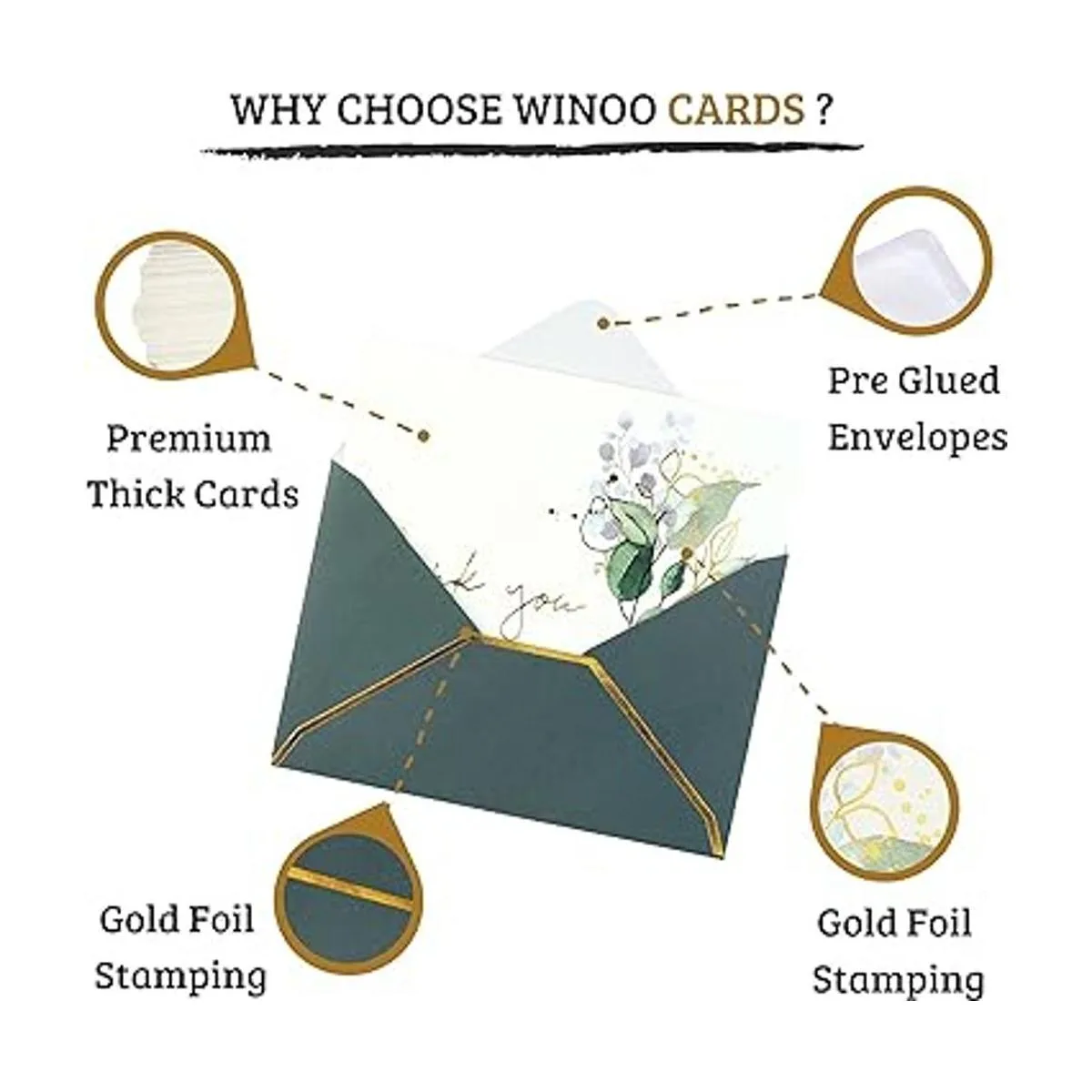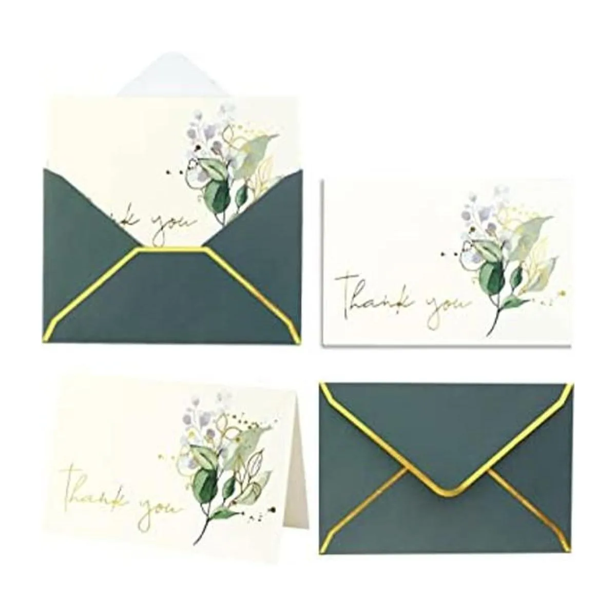 Tarjetas de agradecimiento resistentes con sobres Paquete de 36 notas de agradecimiento doradas de 4 x 6 pulgadas, para baby shower, despedida de soltera, boda, graduación, funeral, pequeños negocios, verde
