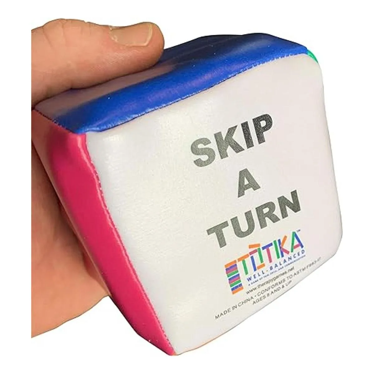 El cubo de juego de terapia Totika es un juego de comunicación rápido y simple donde los jugadores ruedan para un color, dibujar una carta y hacer a cualquier otro jugador la pregunta de color enrollado.