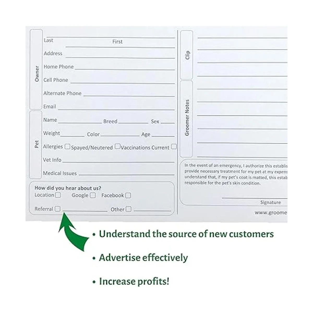 Eficiente: lógicamente dispuesto para guiar a los clientes al rellenar nuestras tarjetas de clientes de aseo de mascotas