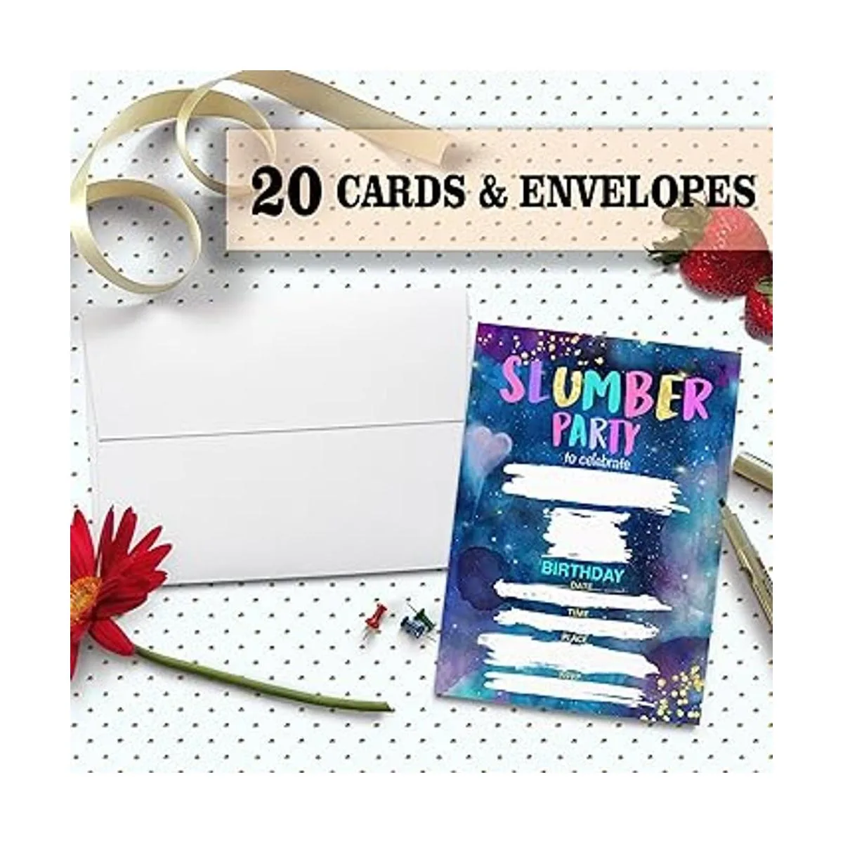 3 Cantidad: cada paquete incluye 20 tarjetas y 20 sobres a juego, comience la fiesta inolvidable con estas adorables tarjetas de invitación.