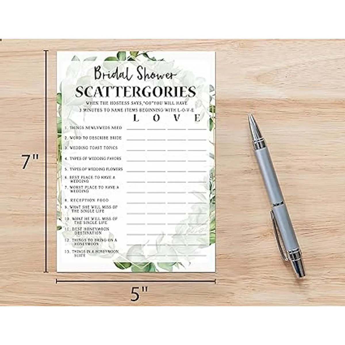 Tamaño: nuestras tarjetas de juego miden 5 x 7 pulgadas para garantizar suficiente espacio para que tus invitados escriban. 30 tarjetas por juego.