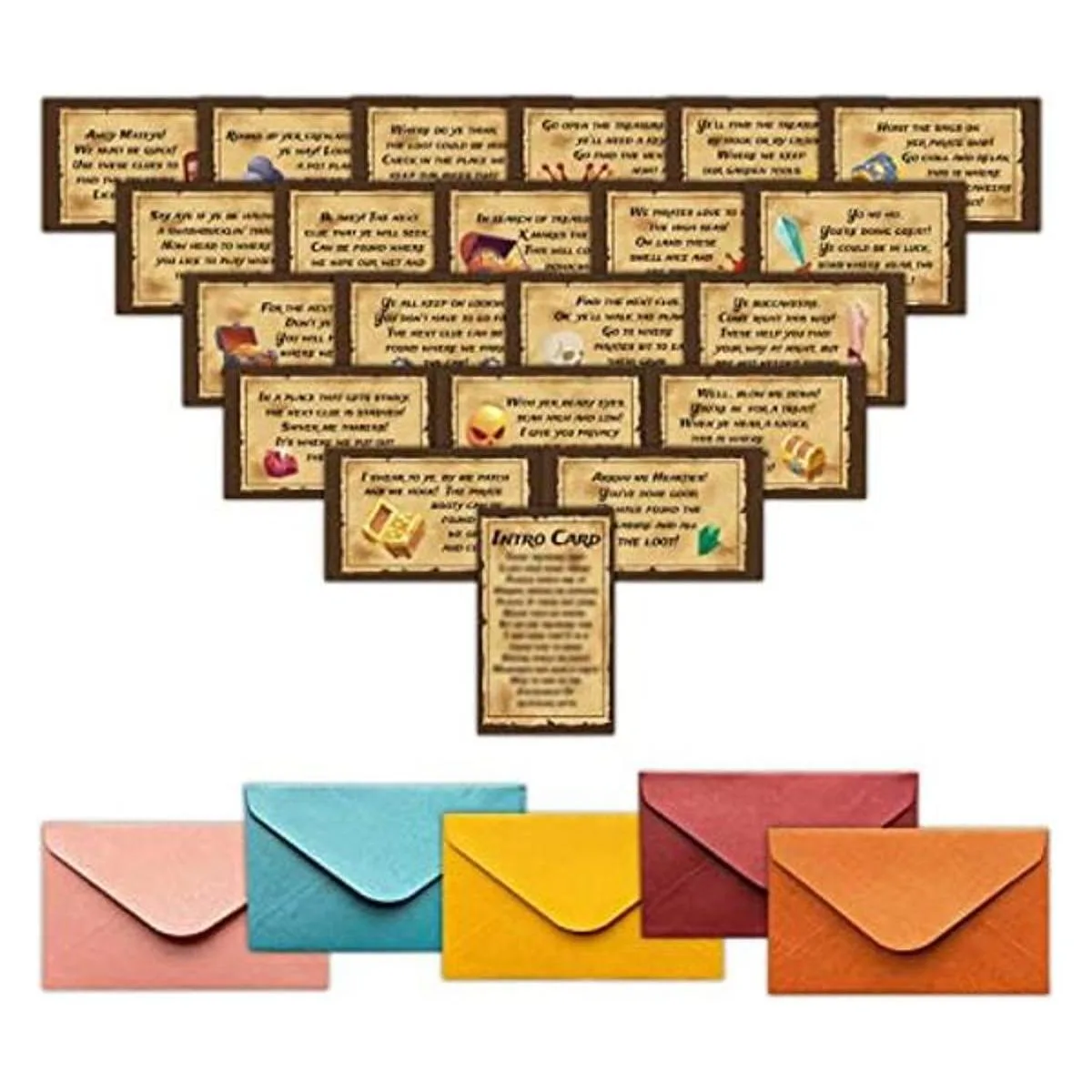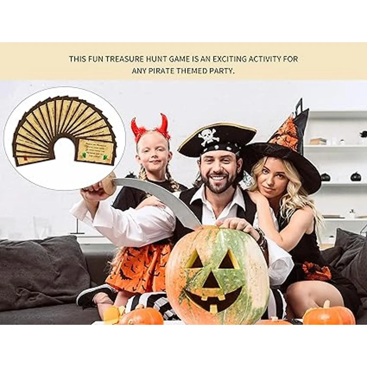 Tarjetas de juego de pistas de caza del tesoro pirata de Halloween, fiesta de cumpleaños, juego de cartas de búsqueda del tesoro 21 cartas con sobres coloridos, suministros de juegos de fiesta de piratas de jardín interior, actividades para adolescentes, niños y adultos 02