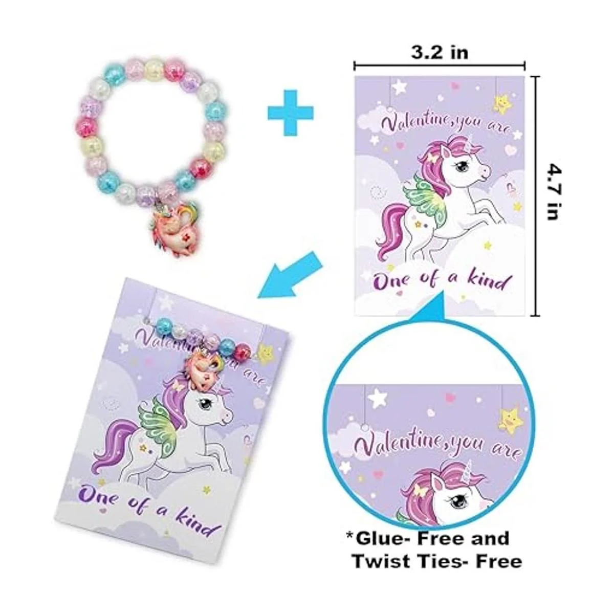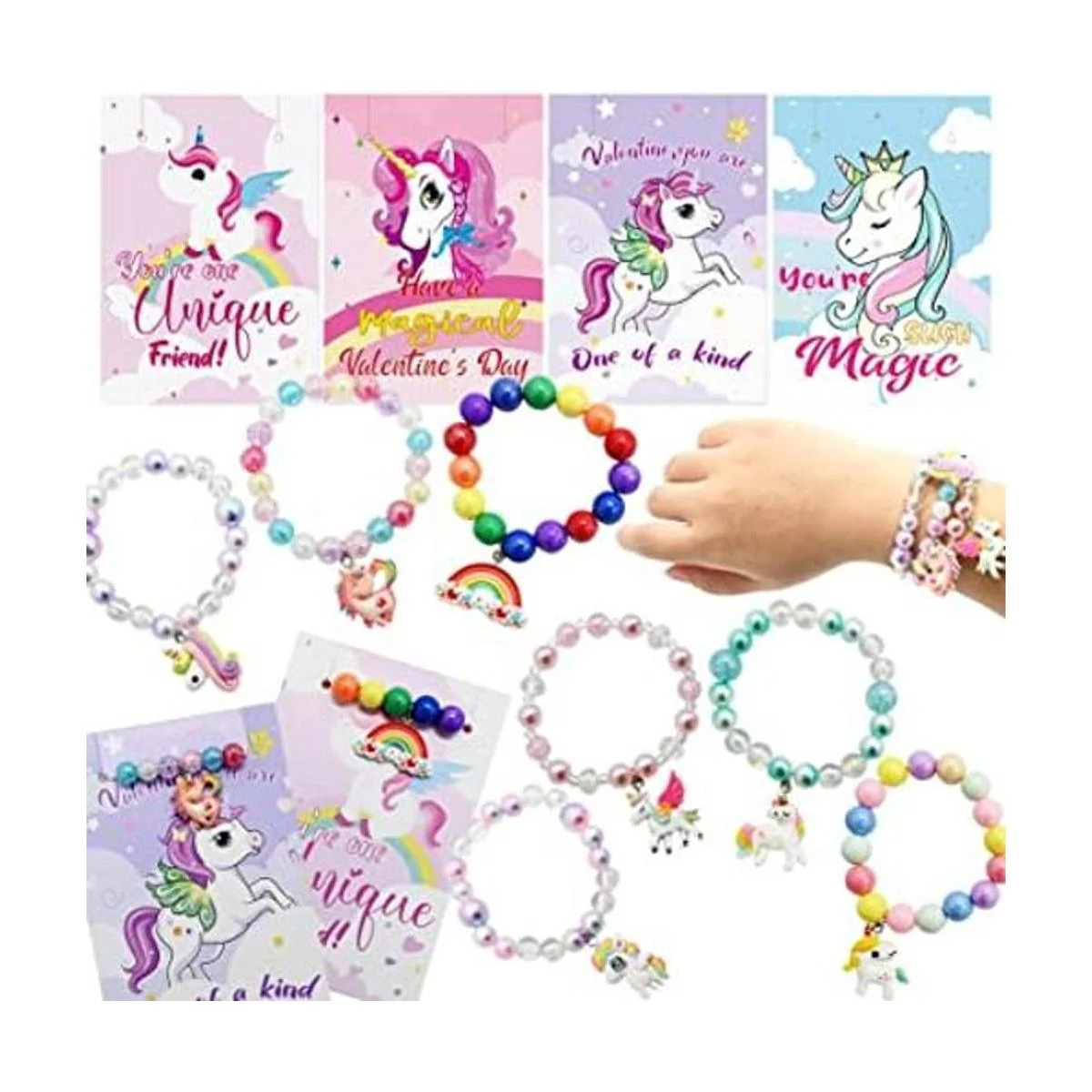 Regalo ideal. Las tarjetas del día de San Valentín para niños y las pulseras de unicornio son adecuadas para regalos de fiesta de intercambio en el aula, regalos de cumpleaños, premios de juego.