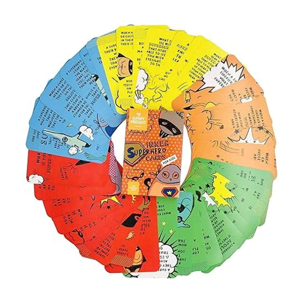 Tarjetas de superhéroe interiores para niños, 42 tarjetas de acción que invitan a la reflexión para que los niños aprendan habilidades de superhéroes a través del juego, como manejar emociones, habilidades de comunicación y descubrir talentos ocultos