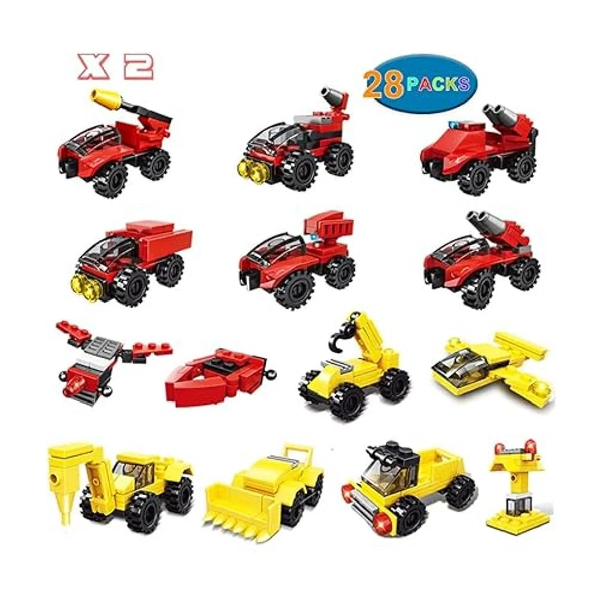 Paquete de gran valor: nuestros kits de bloques incluyen 28 paquetes de bloques de construcción de vehículos, cada paquete contiene todas las piezas para construir un coche. Los bloques de construcción 8 en 1 rojos se pueden montar en robots. Los bloques de construcción amarillos 6 en 1 se pueden montar en el vehículo. Grandes actividades de juegos en solitario o en grupo colaborativo para aulas escolares y hogar.
